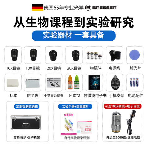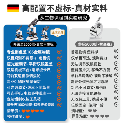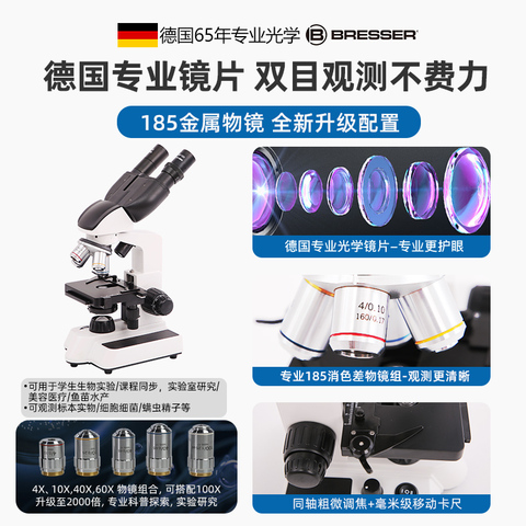 德国宝视德显微镜,,高倍高清双目科学实验室生物光学专业级,185消色差物镜,成像更清晰,可看细菌养殖水产研究中小学生初中生儿童可用。