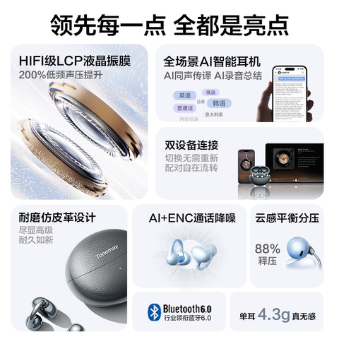 59¥ HU108 SLnSUnXq1Kr¥ https://m.tb.cn/h.7Dll8r1 唐麦Q5耳夹AI蓝牙耳机2026新款开放无线气骨传导运动翻译政府补贴