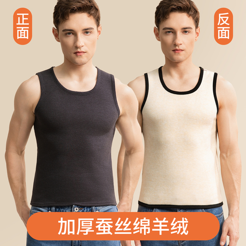 雅鹿羊毛蚕丝男士保暖背心加绒加厚打底内衣发热马甲保温上衣冬季
