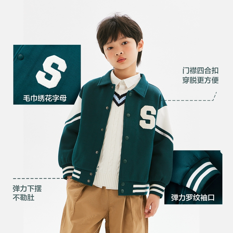 森马儿童外套春季2025新款撞色美式复古休闲学院风潮流时尚棒球服
