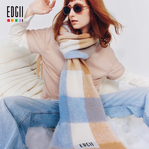 【新年礼物】EDGII棉花糖羊毛围巾,拼色格纹设计,柔软蓬松,保暖又时尚,送礼自用都合适!