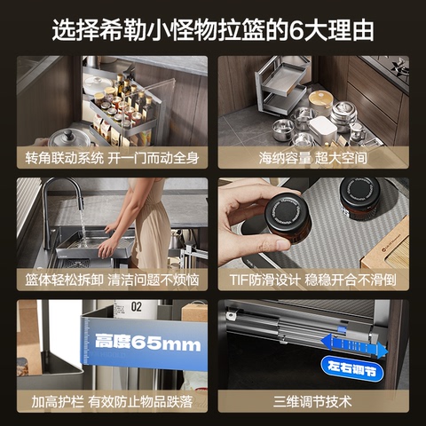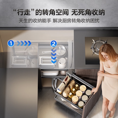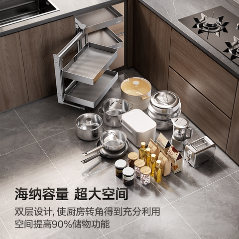 88¥ HU006 FJ4BUnsBMxS¥ https://m.tb.cn/h.7y3xmEt 悍高希勒系列转角拉篮厨房橱柜拉篮半开小怪物铝合金厨房收纳篮