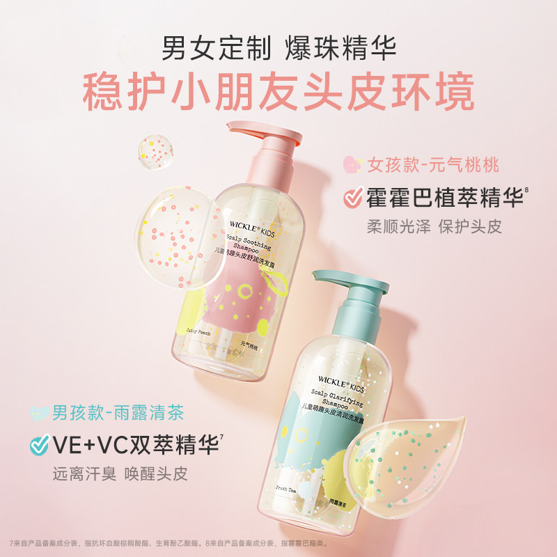 【89/2瓶】,wickle小爆珠青少年洗发水儿专用控油蓬松宝宝洗发露中大童洗头膏