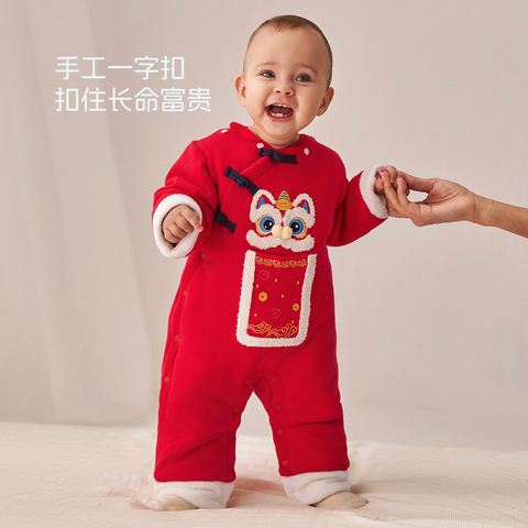【全尺码一个价,99元!叠消费券更低】aqpa婴儿棉服连体衣新年服红色满月百天宝宝衣服秋冬保暖夹棉哈衣