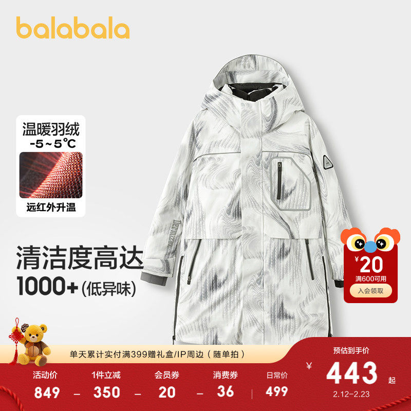 巴拉巴拉儿童鹅绒羽绒服中大童冬装连帽舒适加厚保暖外套上衣潮流
