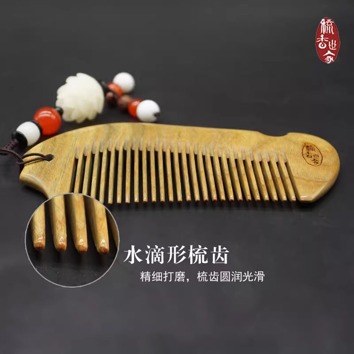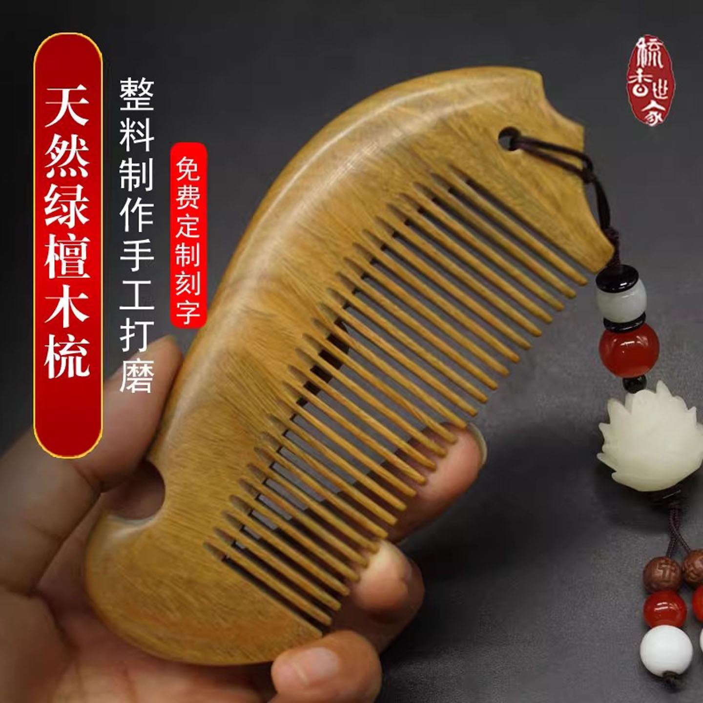 绿檀木梳天然正宗女士专用长发家用檀香木无漆实木便携随身小梳子