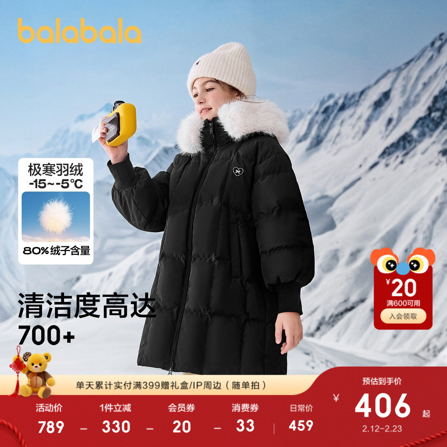 巴拉巴拉儿童羽绒服女童户外防护加厚保暖冬中长款2025年新款外套