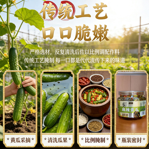一口一个嘎嘎脆,甄选麻辣黄瓜,约60-70天自然生长,自然温差大口感紧实回味甘甜,传统工艺腌制,香辣脆爽百吃不厌,香辣适口超下饭!
