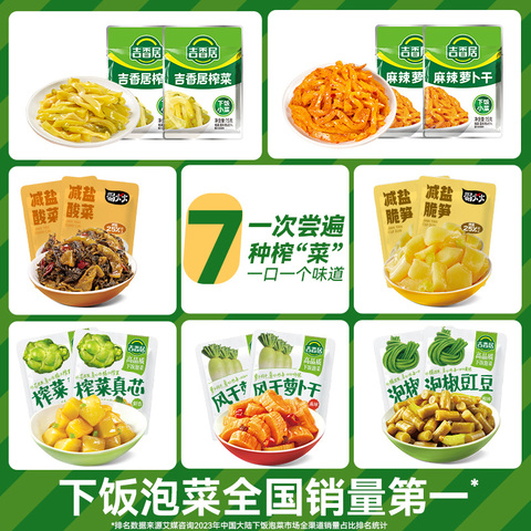 27¥ HU591 xW9zUOtvjSD¥ https://m.tb.cn/h.7E3inuT 【全家福25袋】吉香居榨菜真芯豇豆萝卜干减盐咸菜佐餐小袋组合