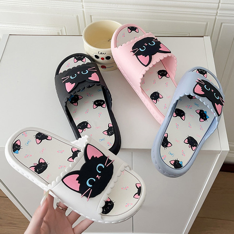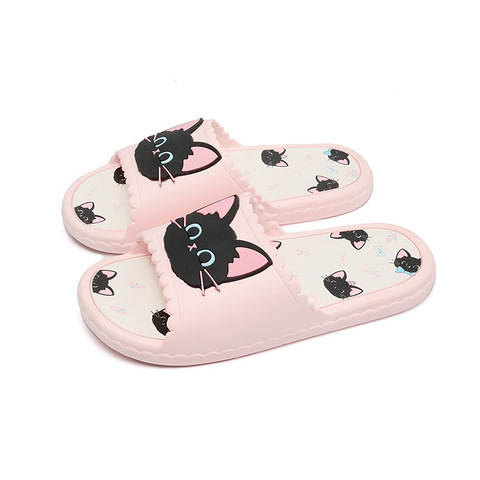 卡通小狗外穿时尚,韩版卡爱超萌小黑猫家居室内洗澡防滑软底拖鞋潮