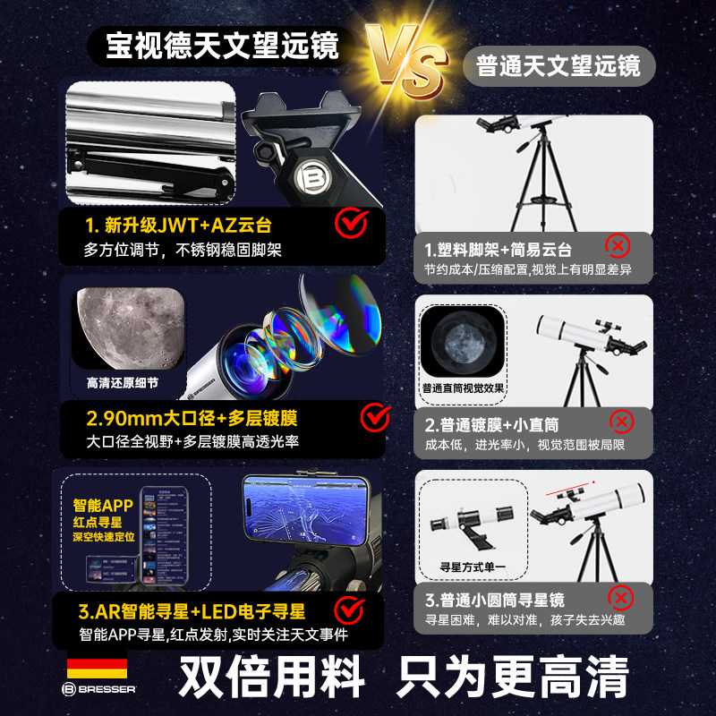 德国宝视德天文望远镜高倍高清专业级别90AR儿童男女孩入门,新升级AR高倍天文望远镜大口径·长焦·高倍寻星,90MM大口径强聚光更高清。