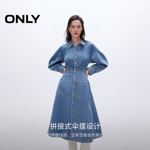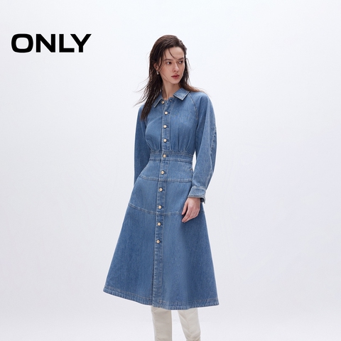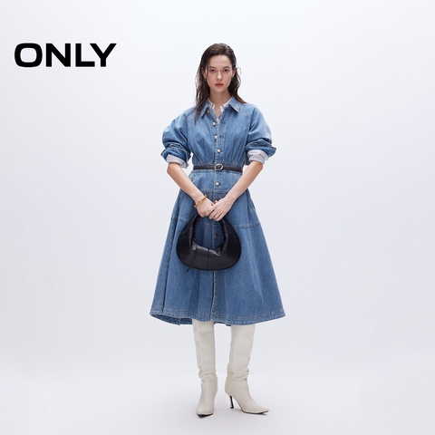 ONLY2026春季新款莱赛尔复古翻领牛仔中长裙连衣裙女|125142002