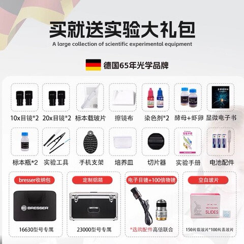 德国宝视德显微镜光学,初中生中小学生专用,双目高清高倍电子专业级三目生物,专业看螨虫细菌家用医用实验室。