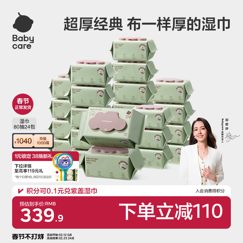 【买就送金山茶新生柔湿巾10抽3包+山茶新生柔巾10抽3包,卷后131亓】babycare婴幼儿湿巾婴儿护理师专用的手口湿巾!匠心织造80g水刺无纺布,大尺寸大厚度,搭配蜂房式凸起,脏污轻松擦净,日常用量更省心!5大植萃配方,为肌肤补足营养!