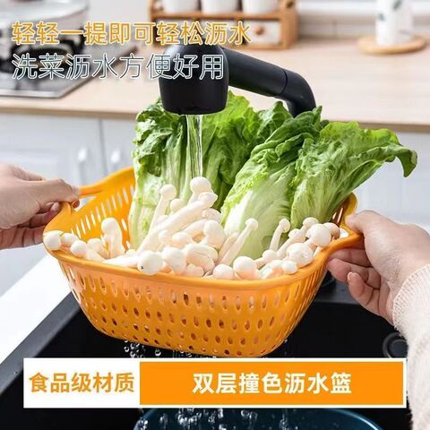 双层沥水篮干湿分离设计!免打孔安装,厨房洗菜洗水果更高效,一放即用超省心~大容量分层沥水,不积水不串味,厨房清洁好帮手!