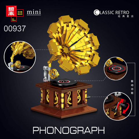 中国潮玩积木哲高复古积木拼装摆件收音机缝纫机留声机咖啡机礼物