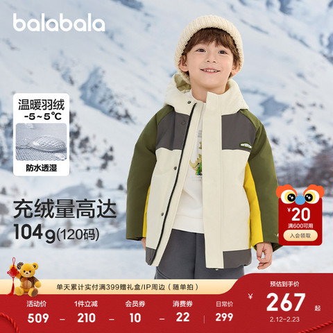 巴拉巴拉儿童羽绒服男童外套厚款保暖舒适宝宝上衣拼接潮流酷冬装