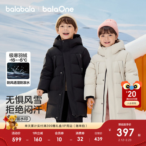 巴拉巴拉儿童羽绒服男童女童宝宝外套厚2025新款童装极寒保暖长款