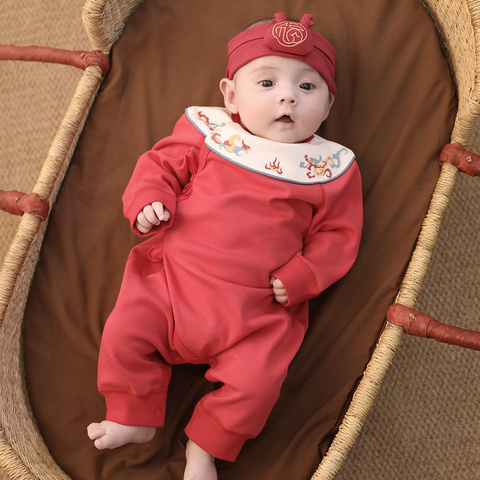 【29】,宝宝满月衣服红色喜庆新年服国风百天婴儿纯棉春秋季新生儿连体衣