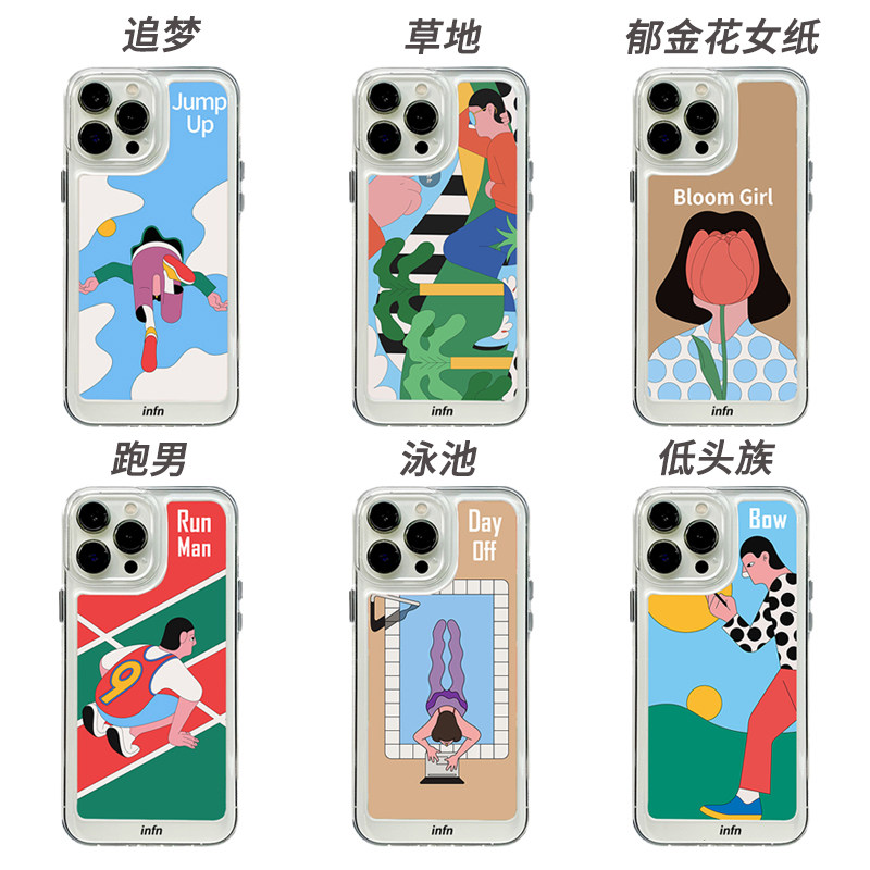 原创RUNMAN艺术17promax适用于苹果壳17创意16pro亚克力15pro卡通14pro高级16promax情侣16promax插画华为壳