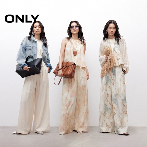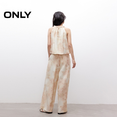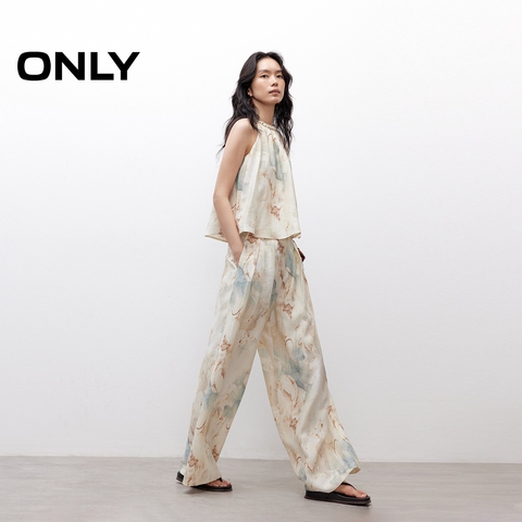 ONLY2026春季新款淡人穿搭挂脖设计轻薄透气宽松亚麻套装休闲裤女