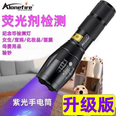 紫光灯验钞手电筒395紫外线荧光检测钱币照板材夜光饵充能UV鉴定