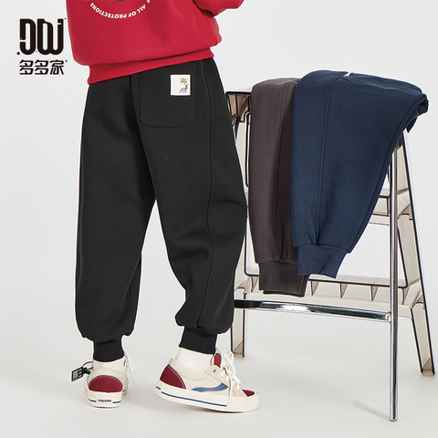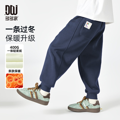 多多家厚实绒里蓄暖升级男童运动休闲长裤冬季儿童一体绒束脚卫裤