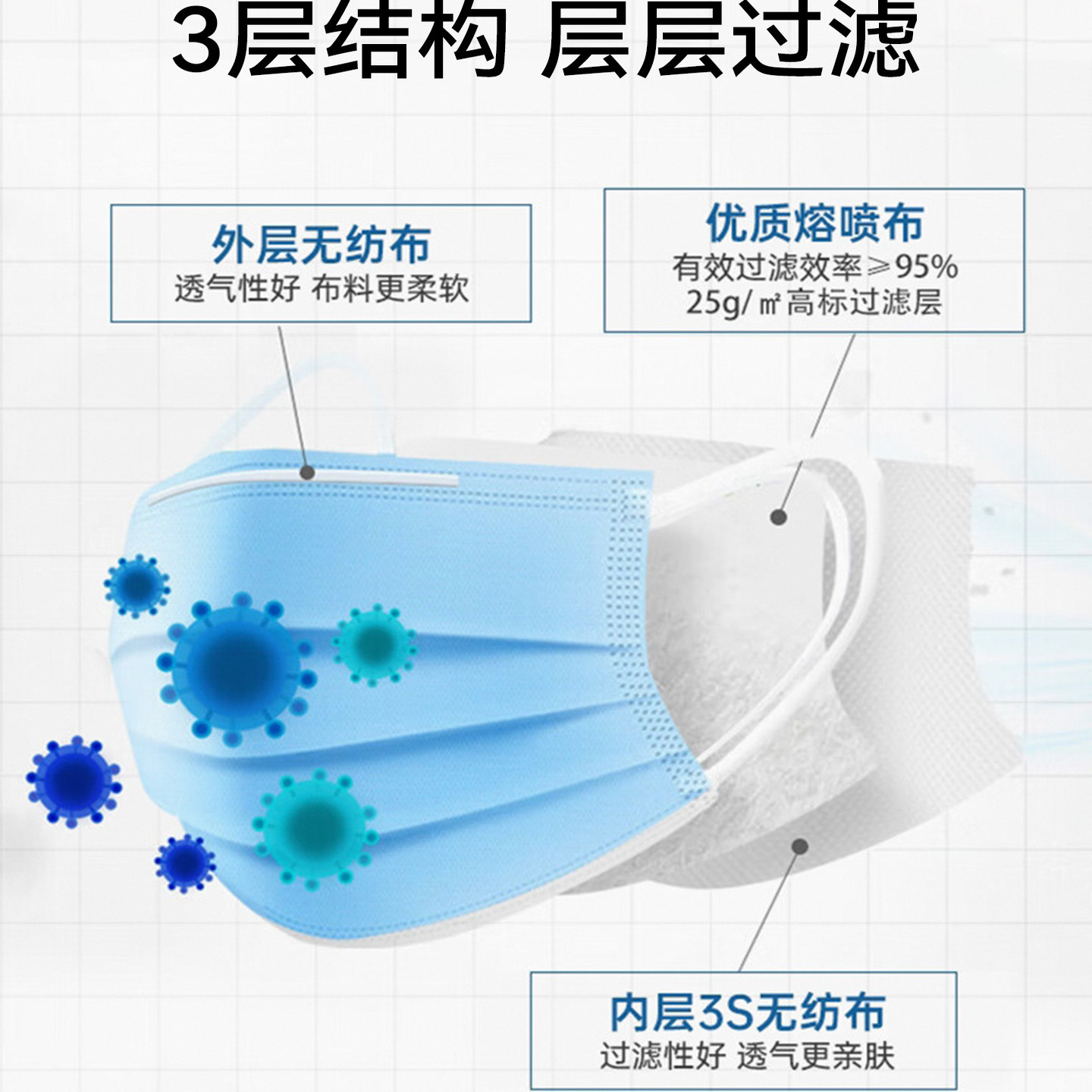 符合YY0469-2011国家医用外科口罩行业标准,BFE细菌过滤大于95%,上市企业更严苛安心~流感来袭,有效预防流感口罩必须备起来!