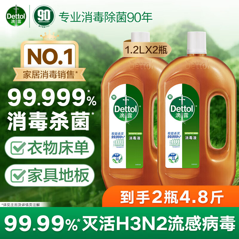 滴露消毒液消毒水衣物除菌液洗衣服地板杀菌除螨消毒喷雾片非84次氯酸 【专业消毒】松木1.2L*2瓶