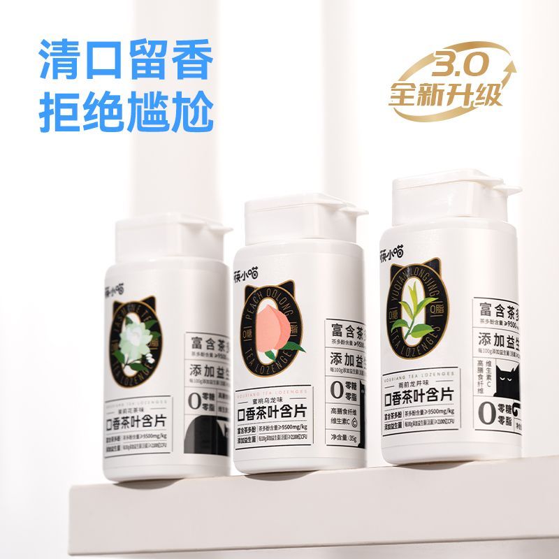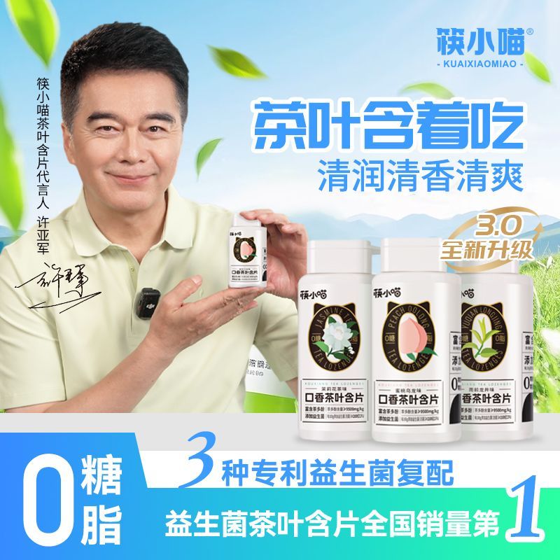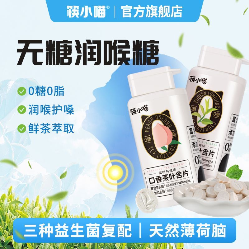 筷小喵无糖润喉糖口气清新VC糖果益生菌含片护嗓口香糖富含茶多酚