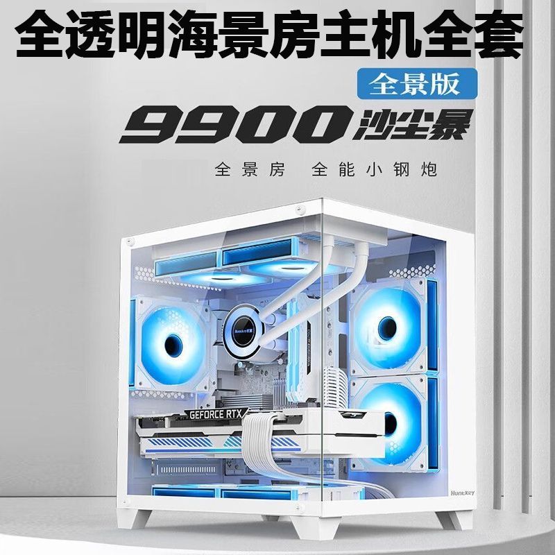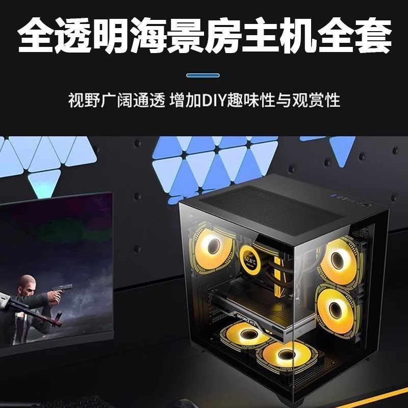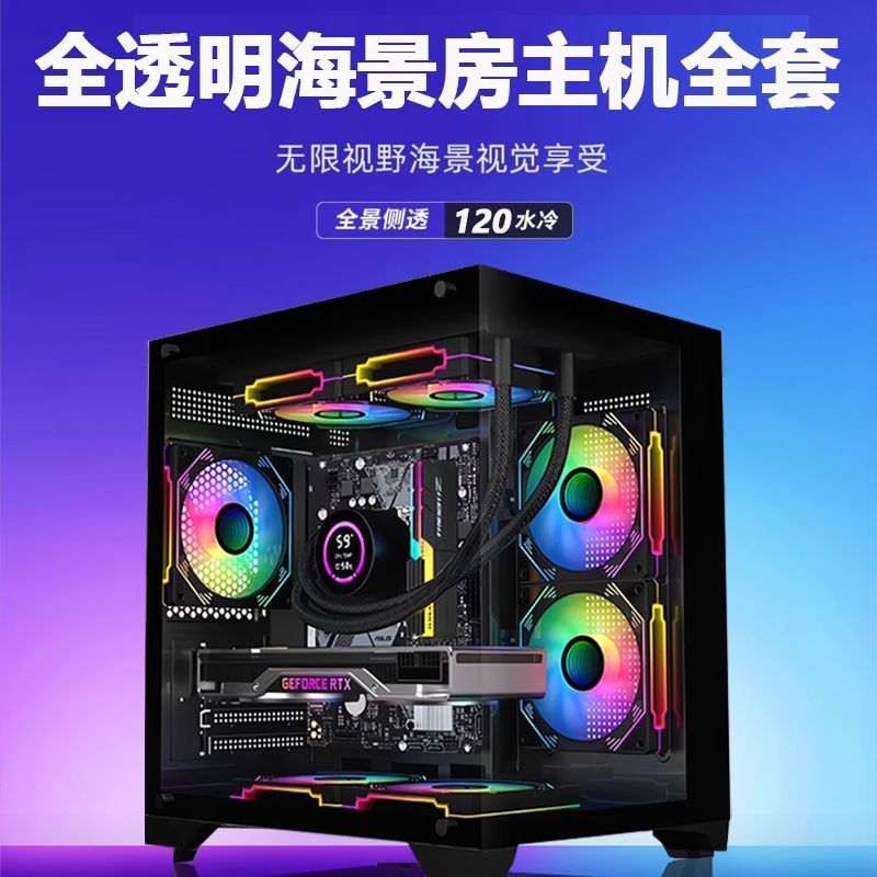 新款全场景高透海景电脑主机整机全套直播游戏水冷-极速吃鸡体验