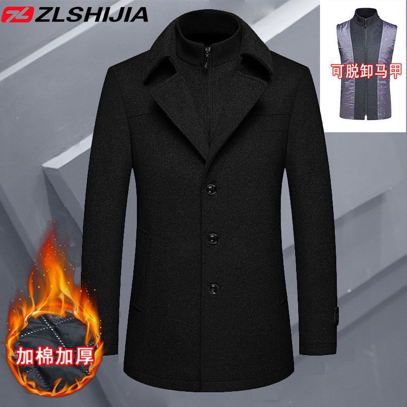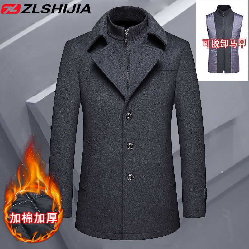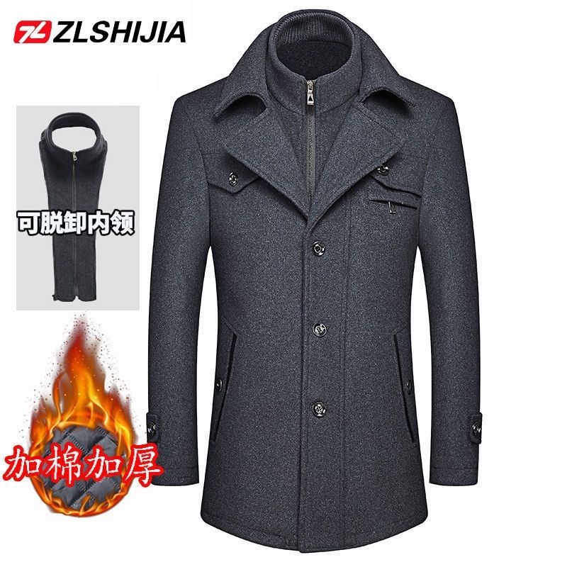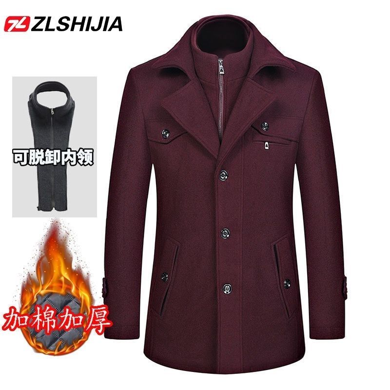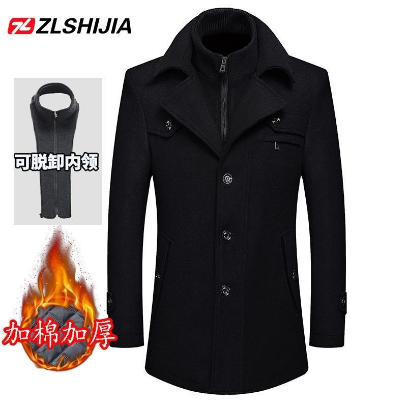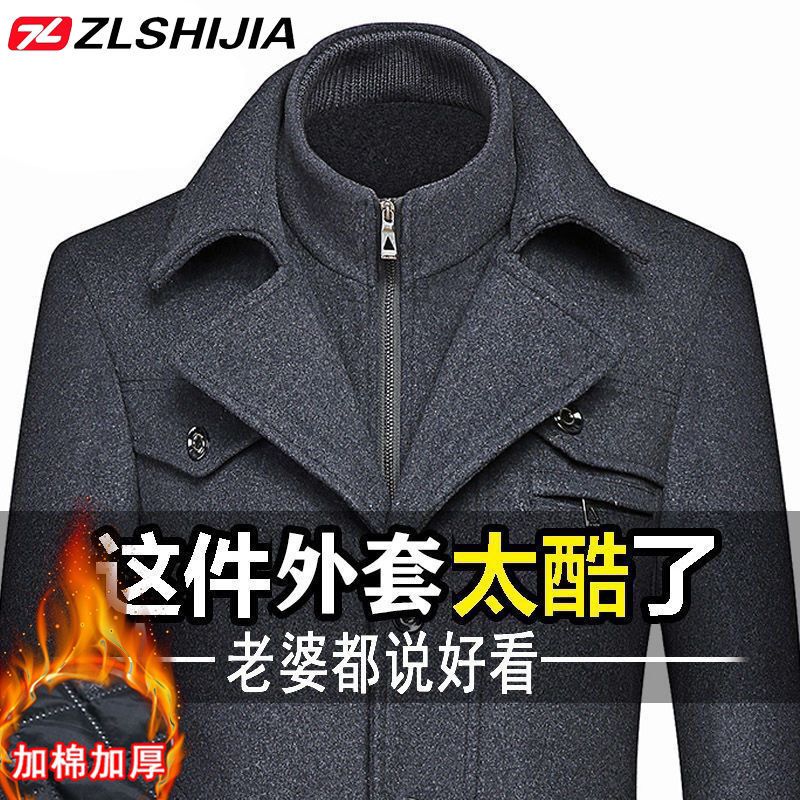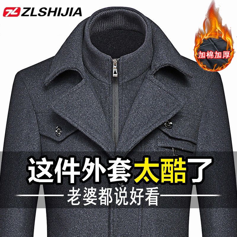 战狼世家秋冬中年男士羊毛呢大衣男加棉加厚呢子外套男装休闲夹克