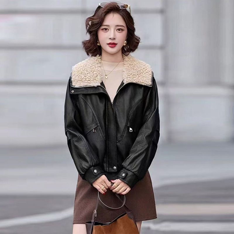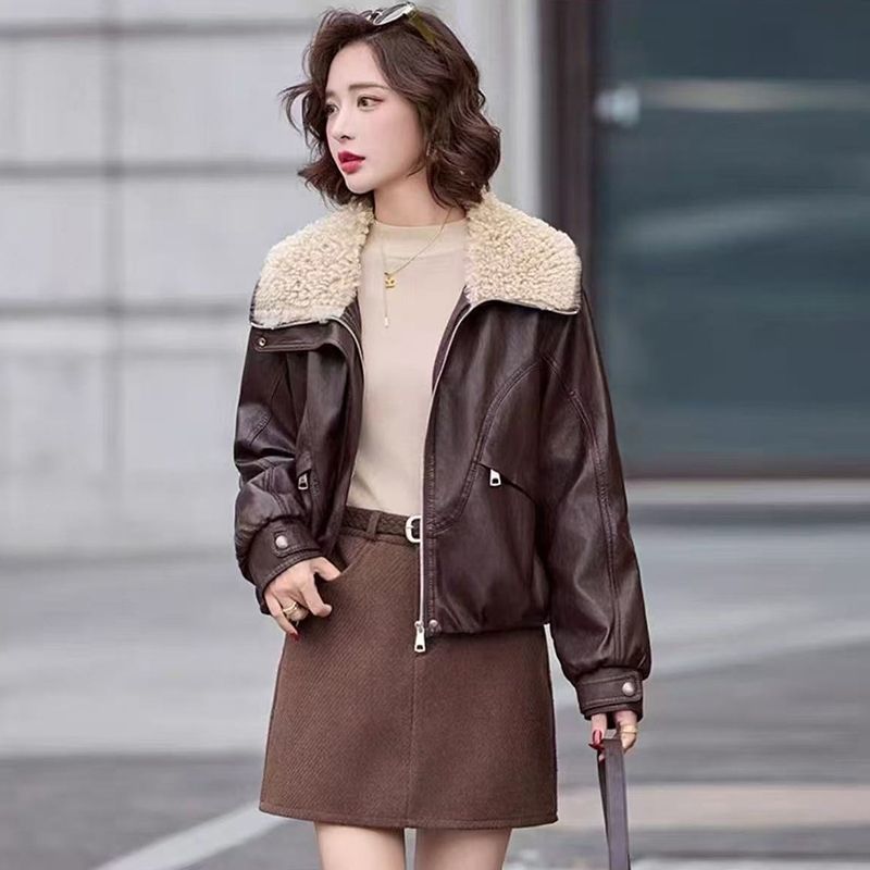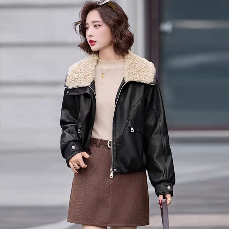 可拆卸大毛领加绒加厚女士皮衣外套短款2025秋冬新款保暖宽松大码