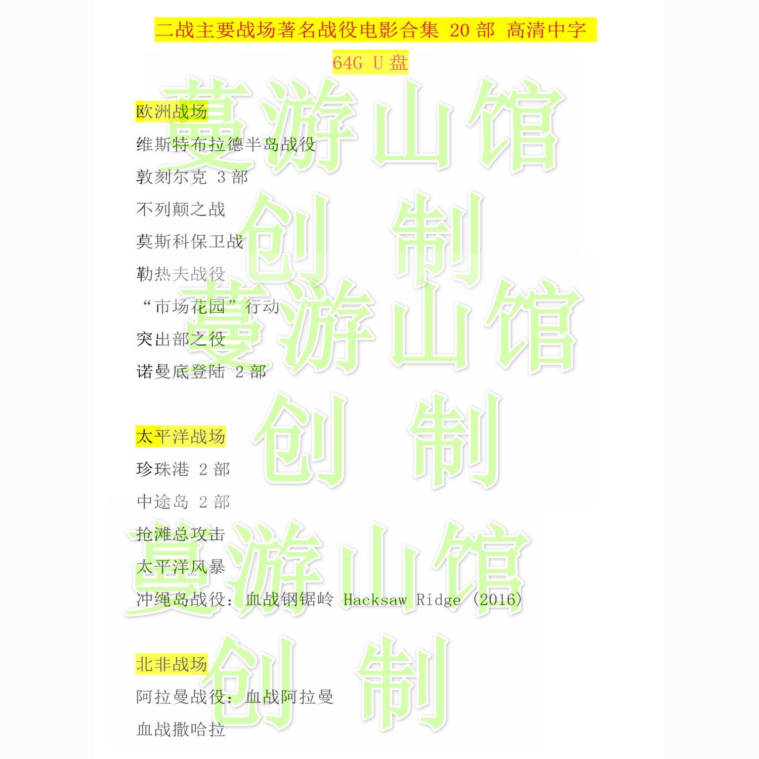 二战主要战场著名战役电影合集 20部 高清中字 64G U盘