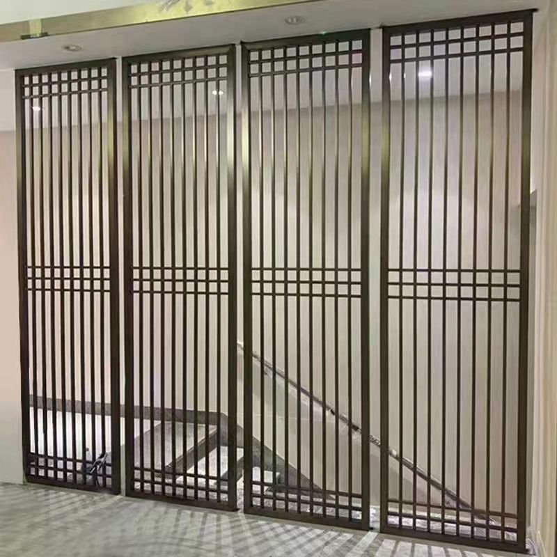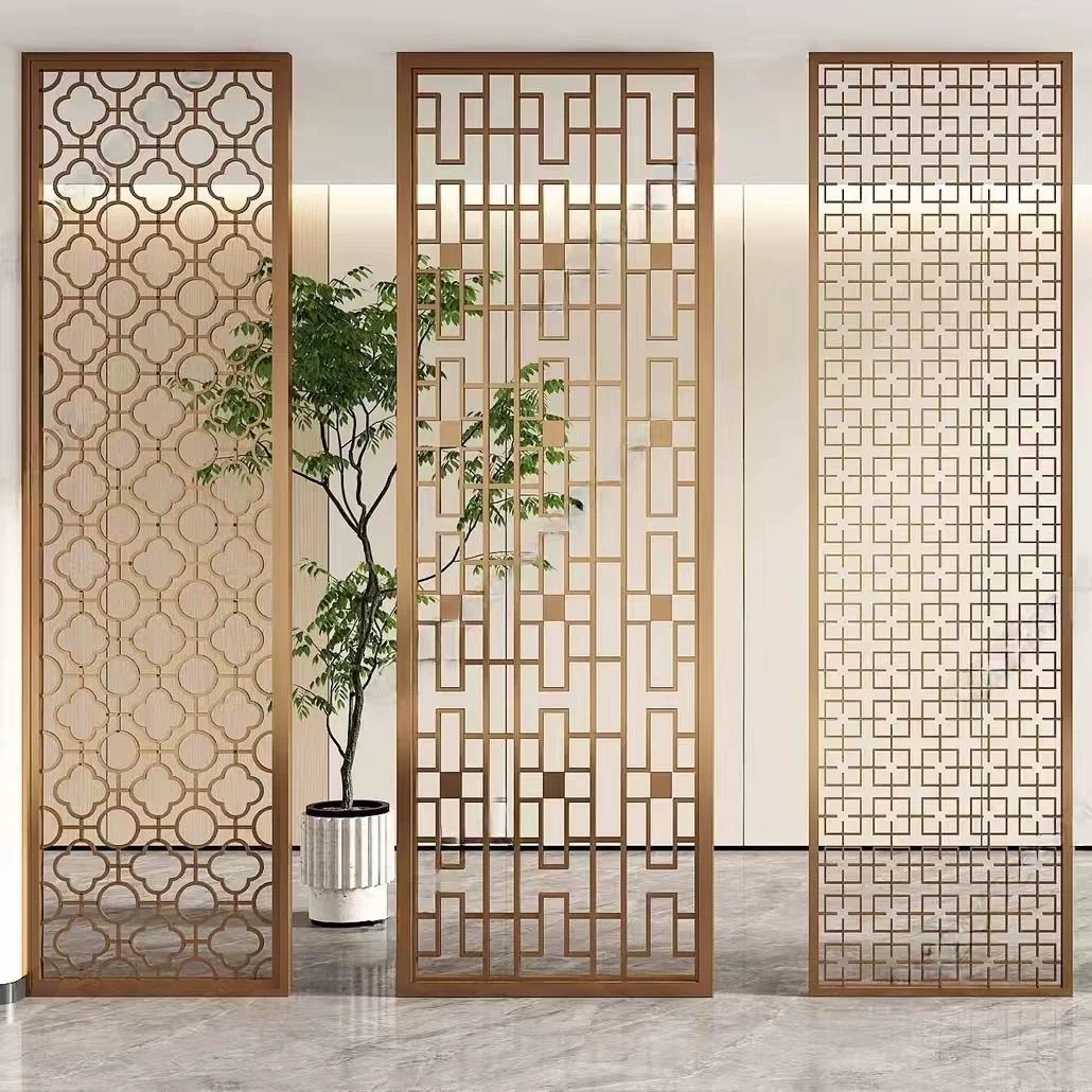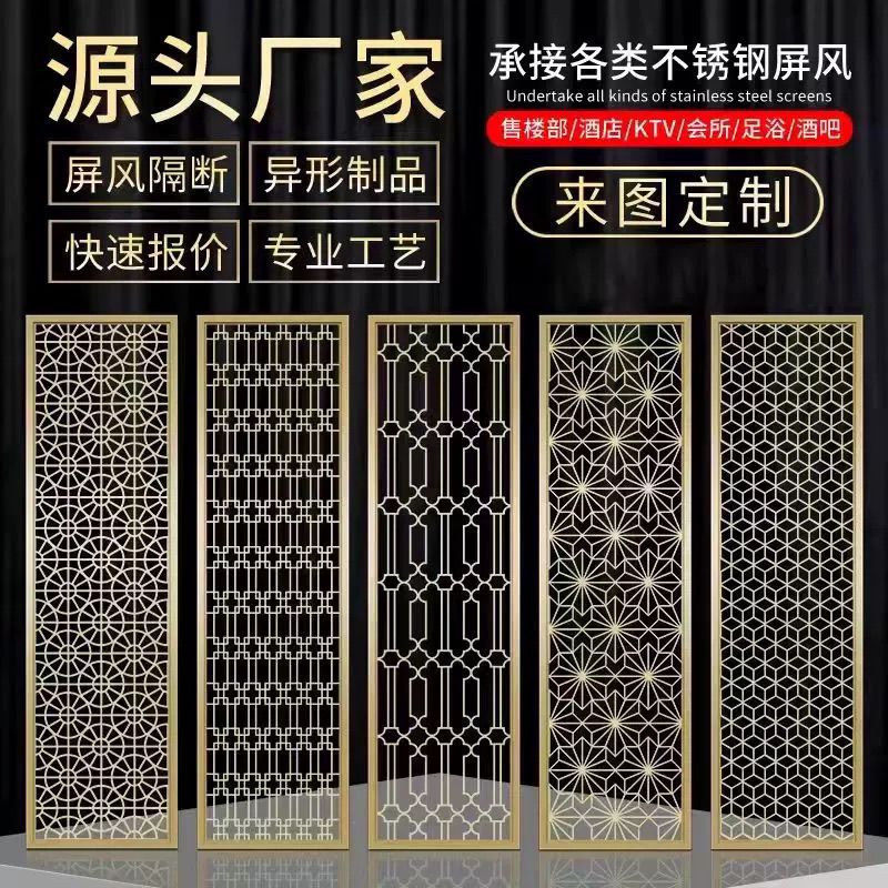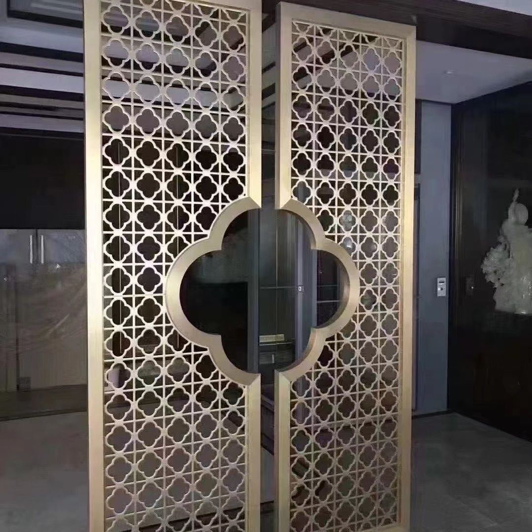 定制轻奢不锈钢镂空花格屏风隔断金属酒店售楼部背景墙中式新中式