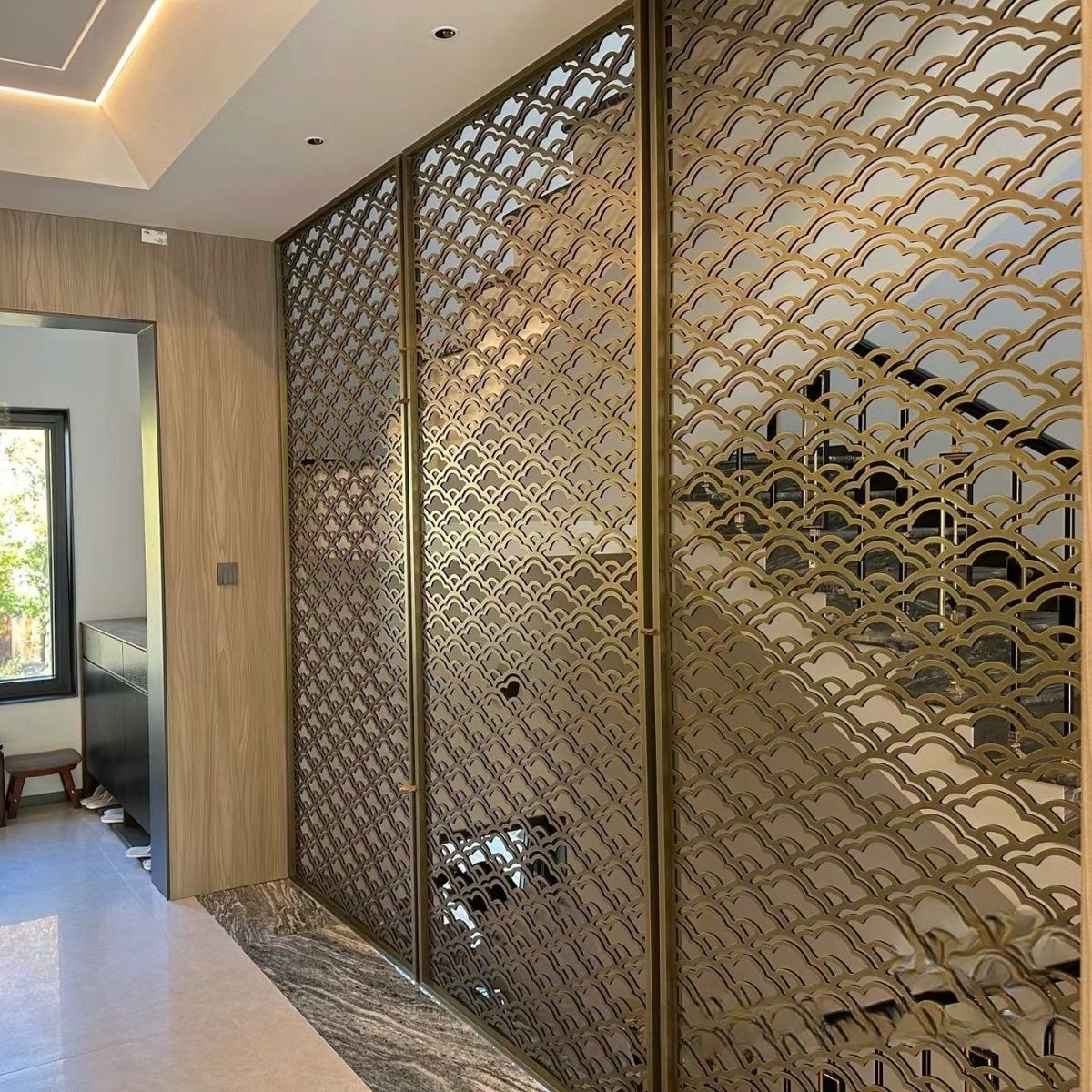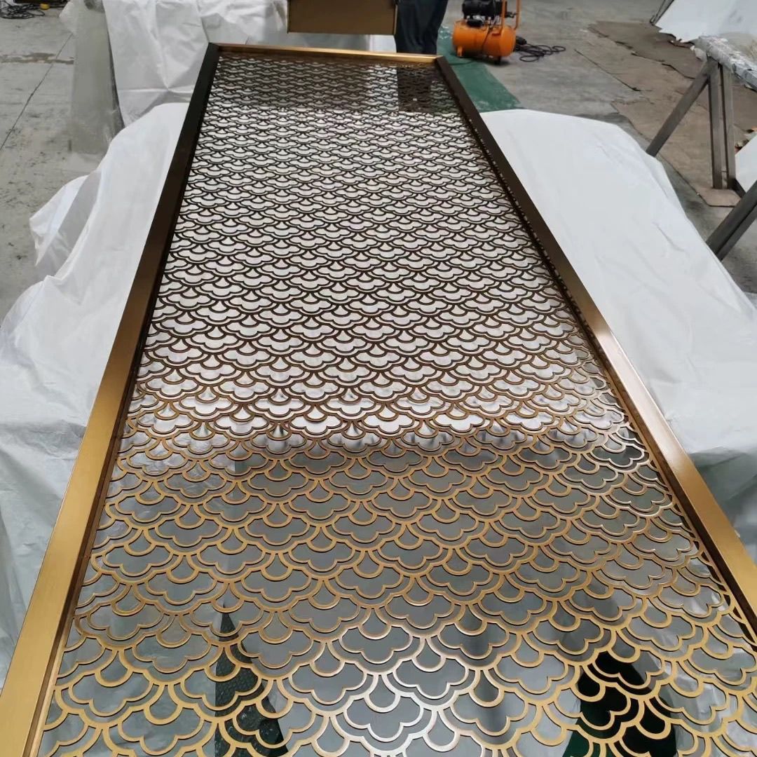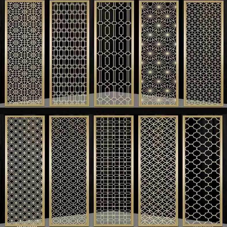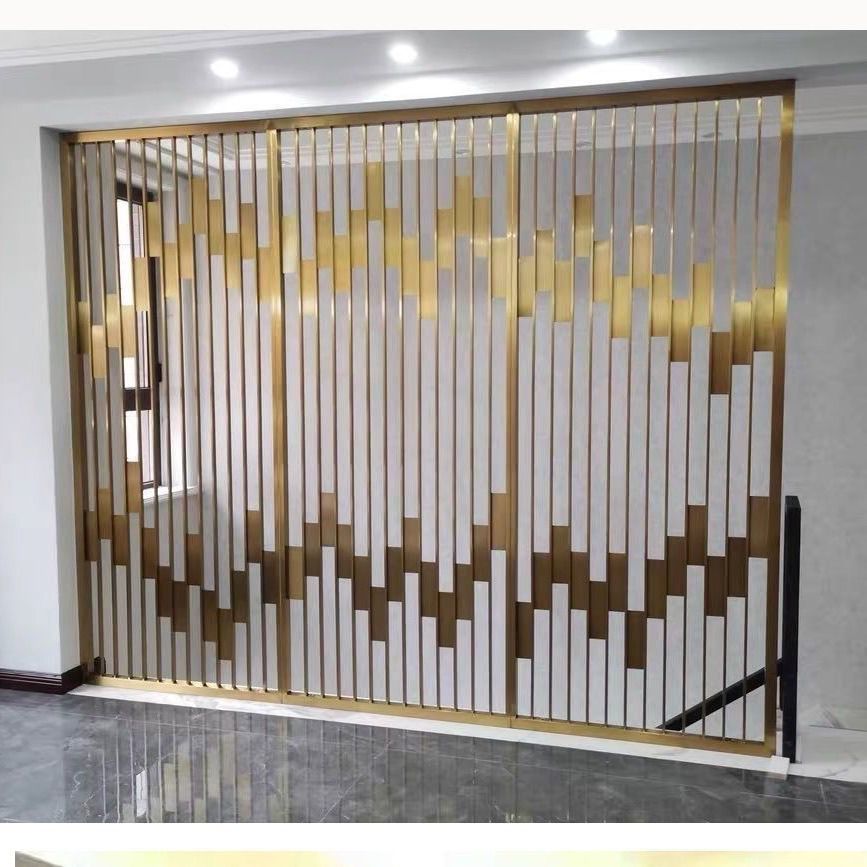 定制轻奢不锈钢镂空花格屏风隔断金属酒店售楼部背景墙中式新中式