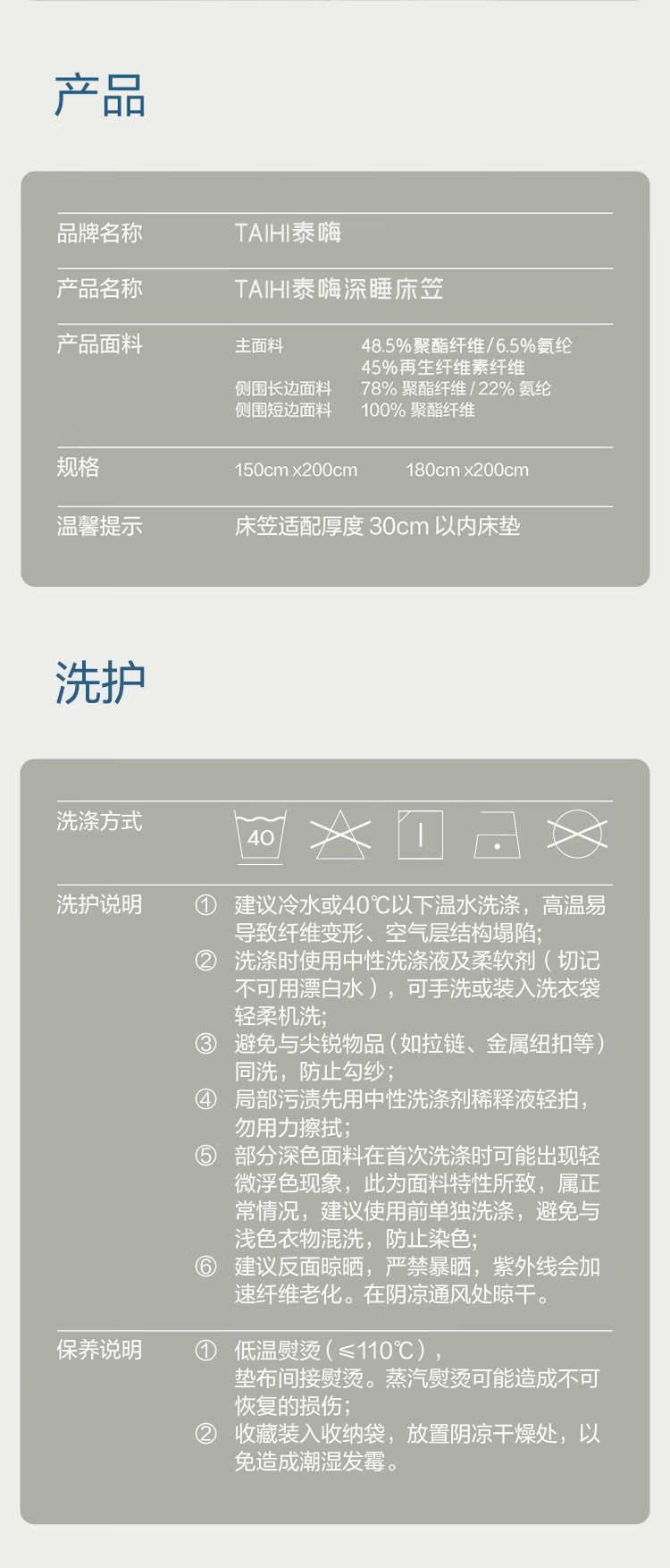 泰嗨(TAIHI)床笠深睡床笠加厚四季床笠套保护罩床罩 岩蓝灰 200cm*150cm