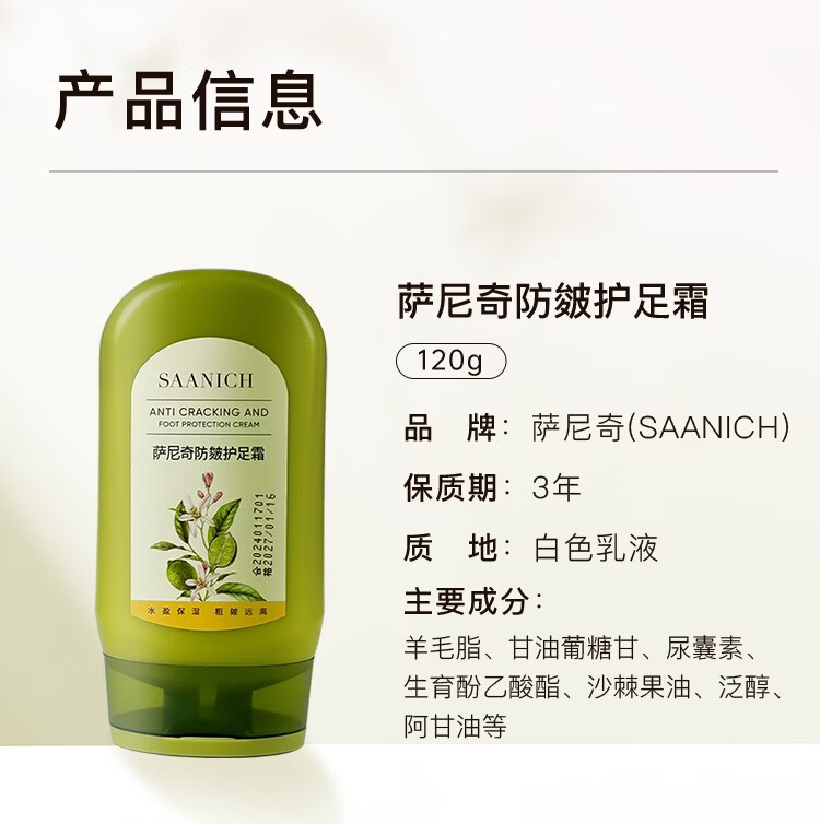 萨尼奇防皴护足霜120g 滋润足部一整天 防干燥大容量 涂后即刻光滑舒适 护足霜120g
