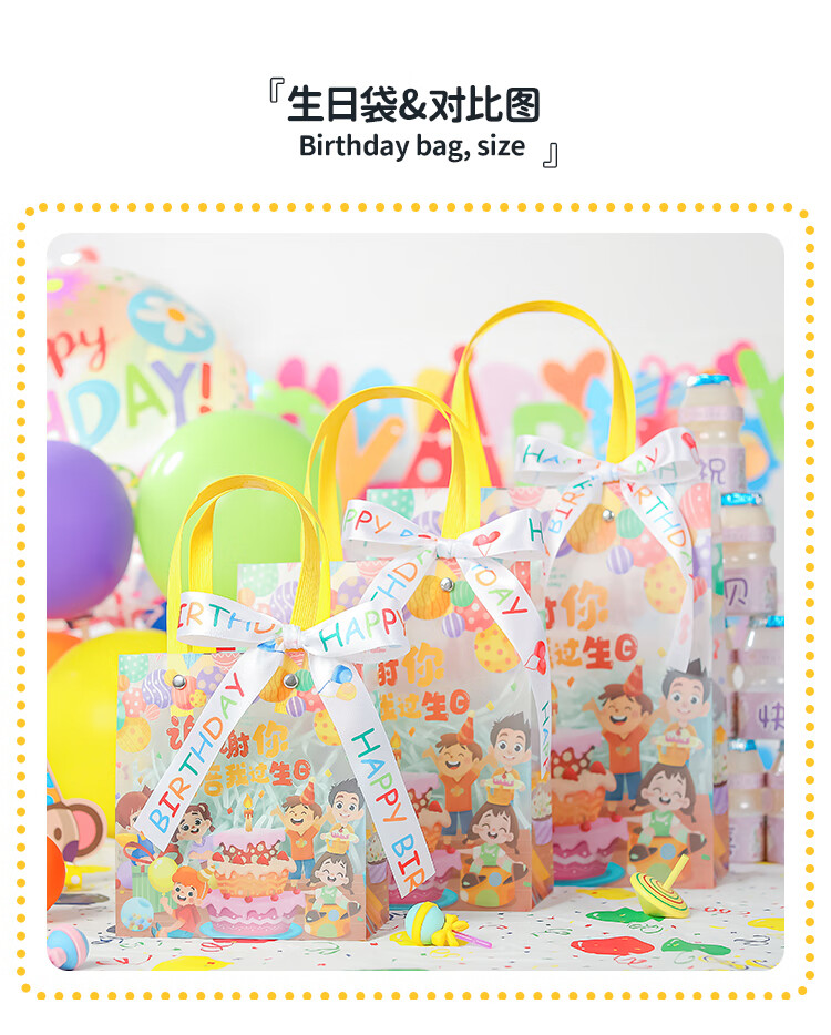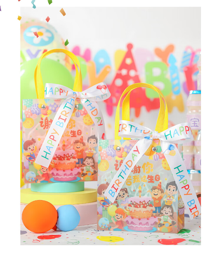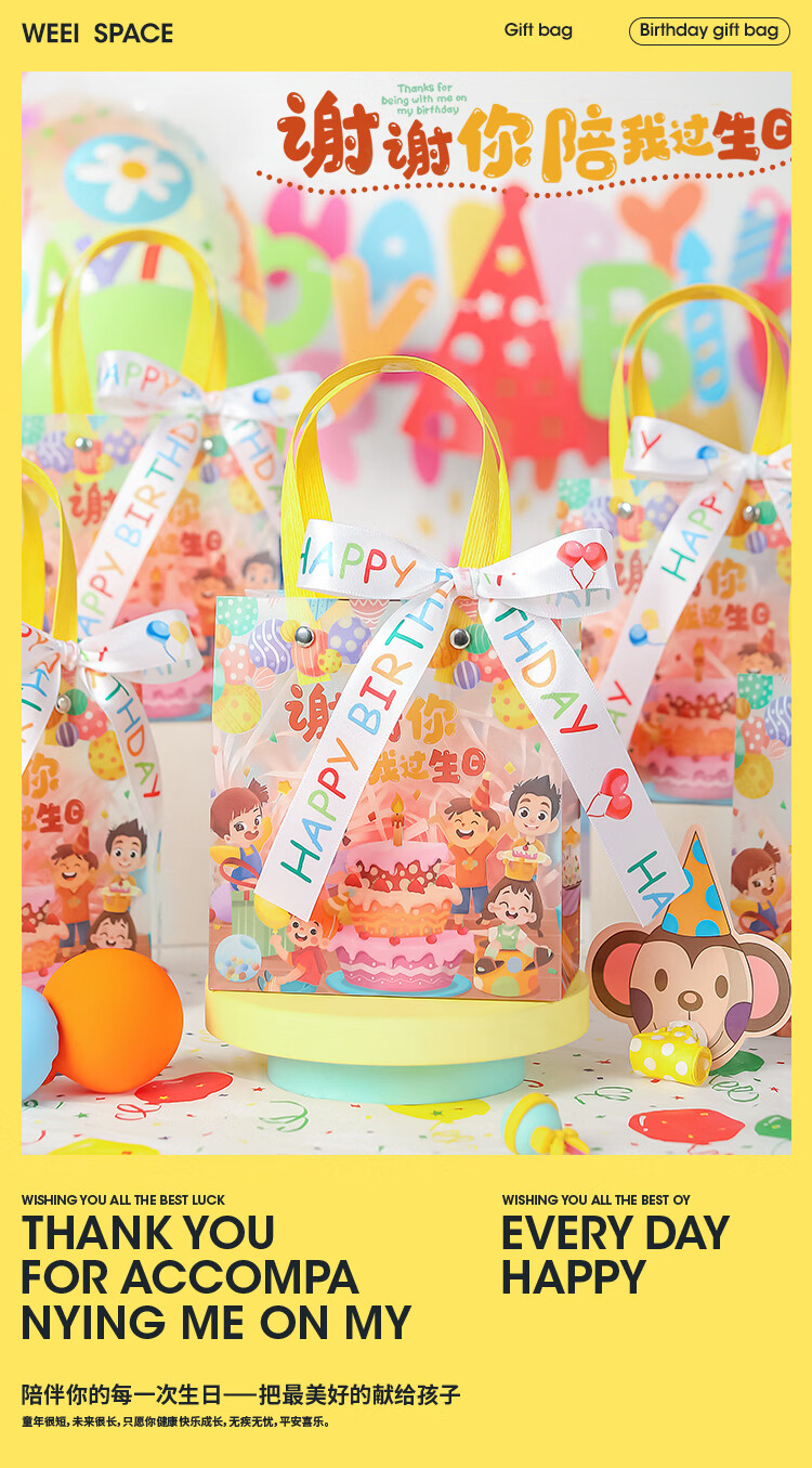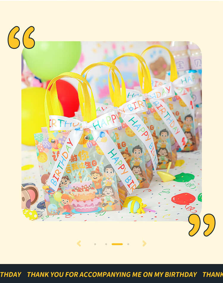 谢谢你陪我过生日礼品袋透明手提小号儿童伴手礼袋子幼儿园礼物袋 小号十个装 生日丝带+谢谢你陪我过生日