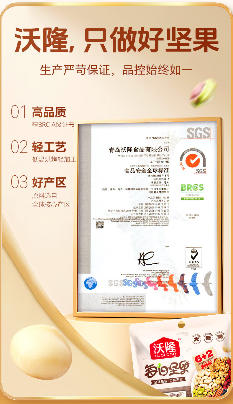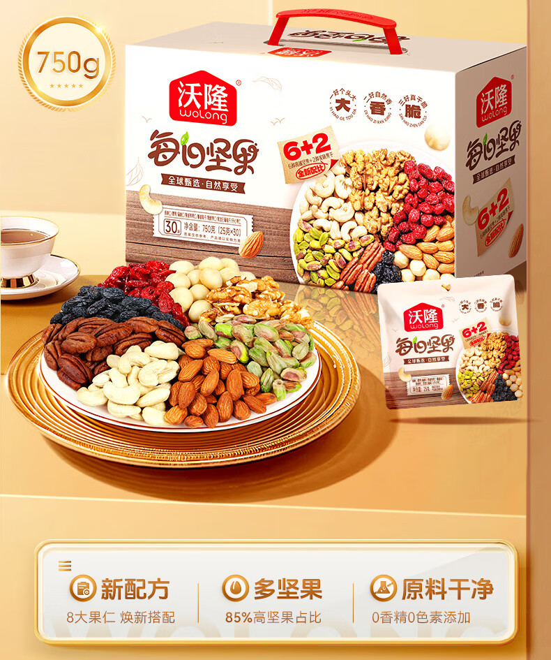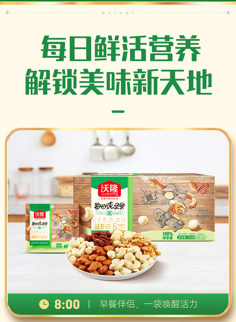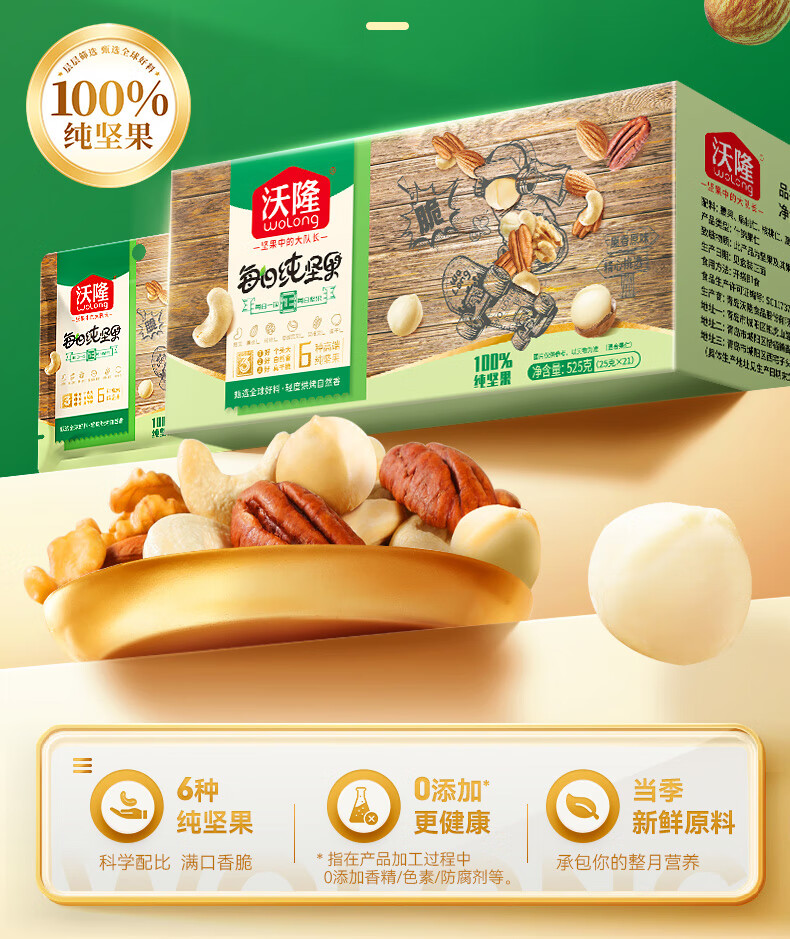 沃隆每日坚果专供款 坚果炒货混合干果仁孕妇零食大礼包腰果核桃礼盒 【74%坚果占比】525g每日坚果