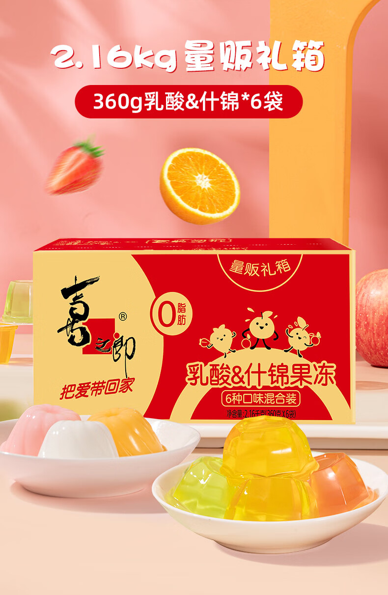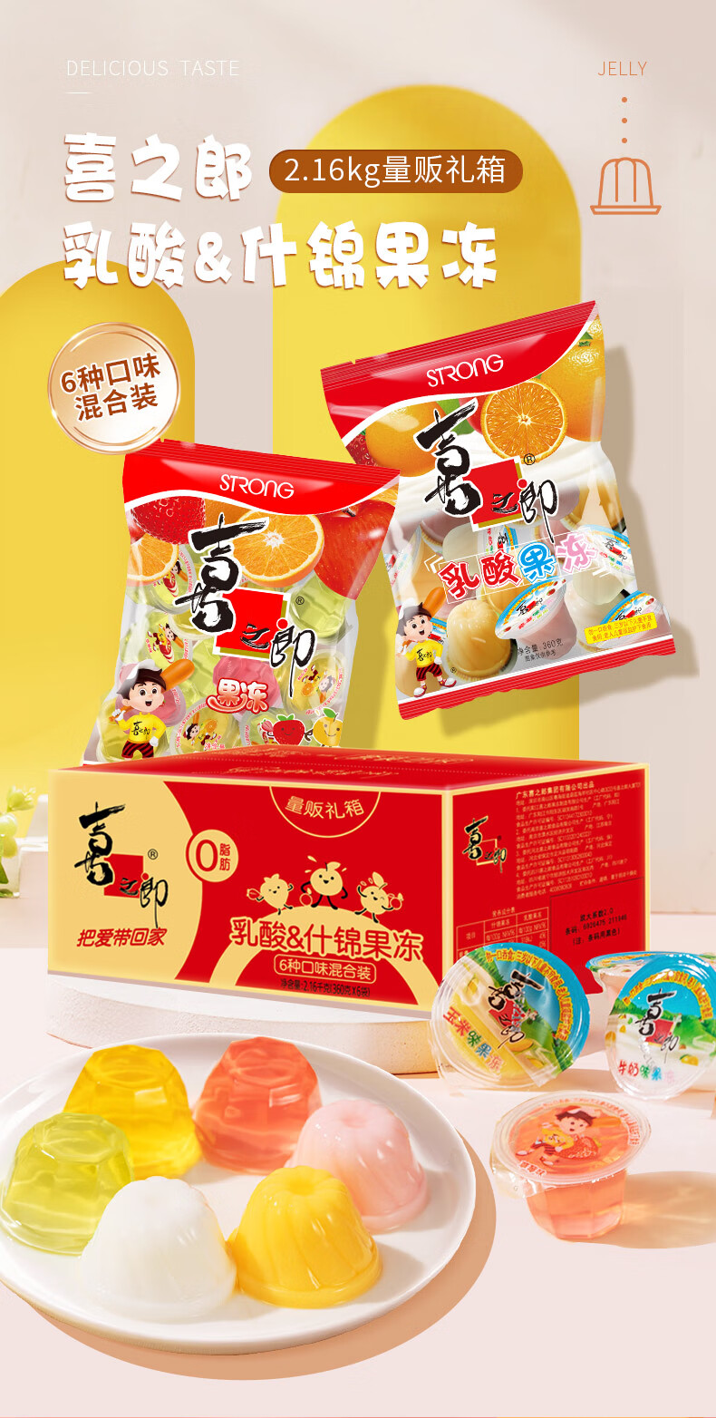 喜之郎什锦乳酸经典果冻84杯2.16kg 6口味休闲儿童零食大礼包下午茶量贩