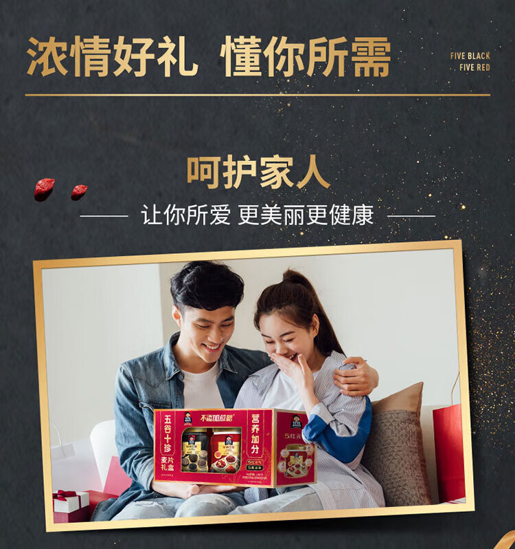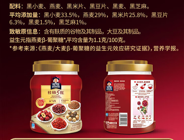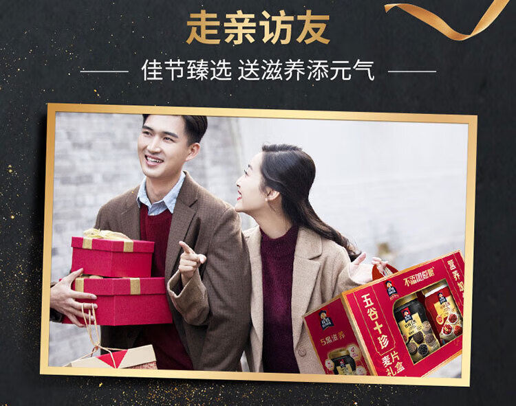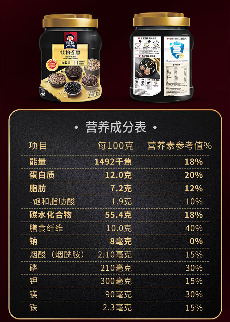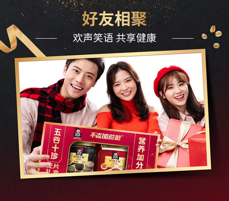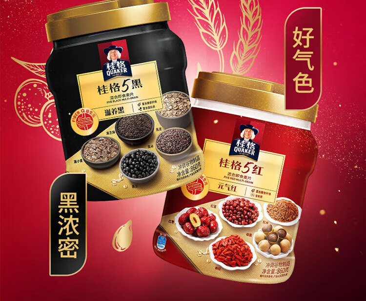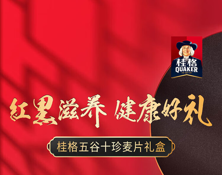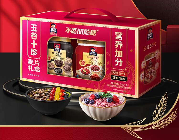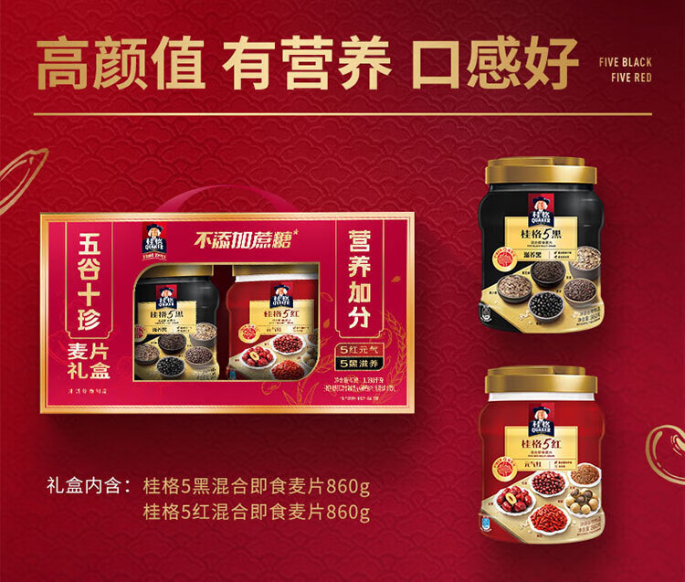 桂格五谷十珍礼盒混合即食燕麦片新中式内润养 新年送礼佳品860g*2罐 【五谷十珍礼盒】五黑860g+五红860g
