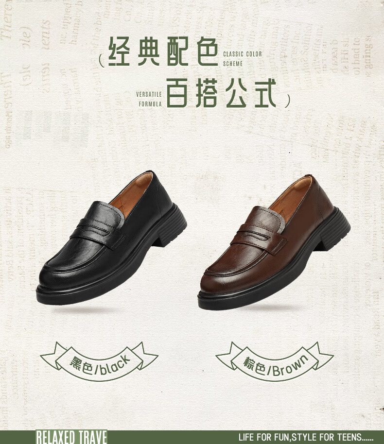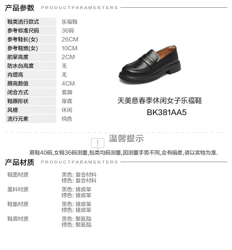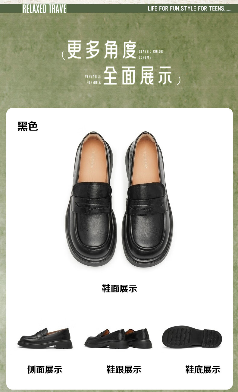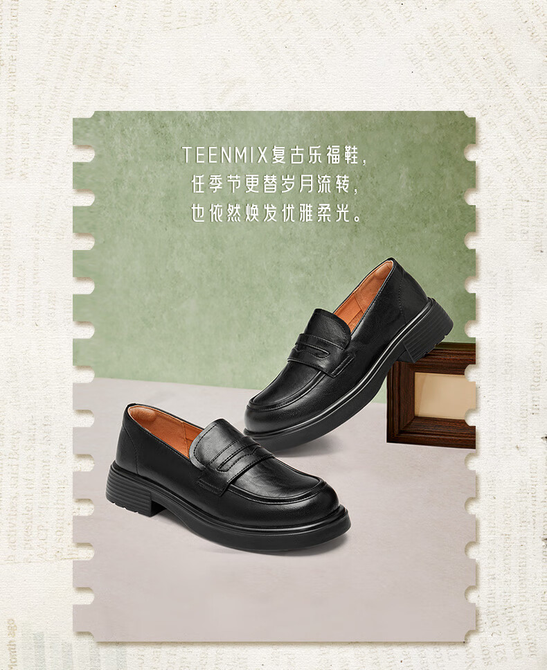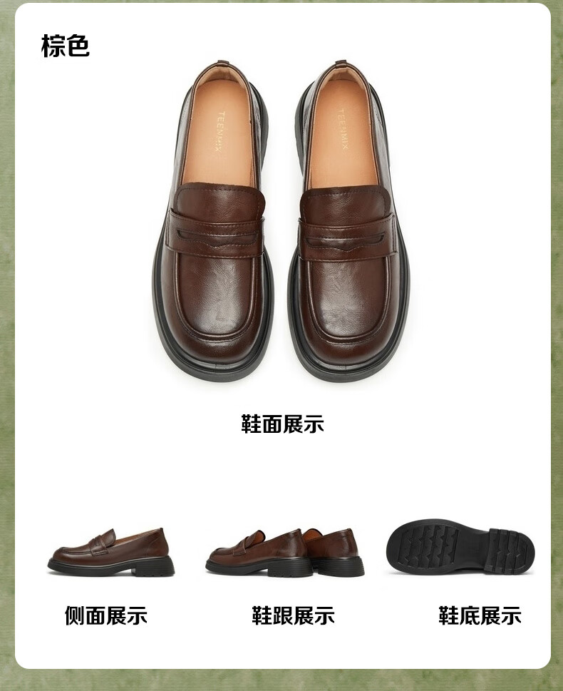 天美意乐福鞋厚底商场同款一脚蹬女鞋上班通勤小皮鞋新款