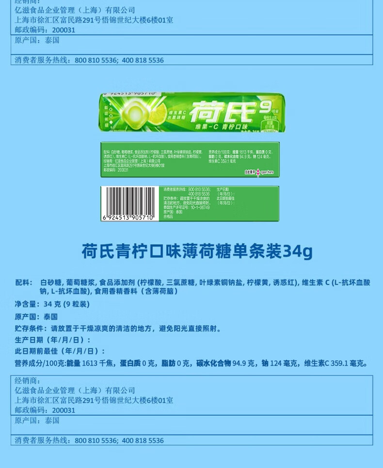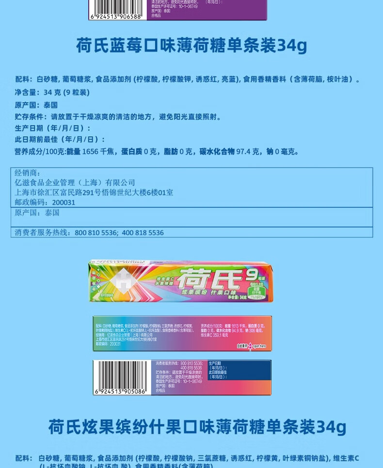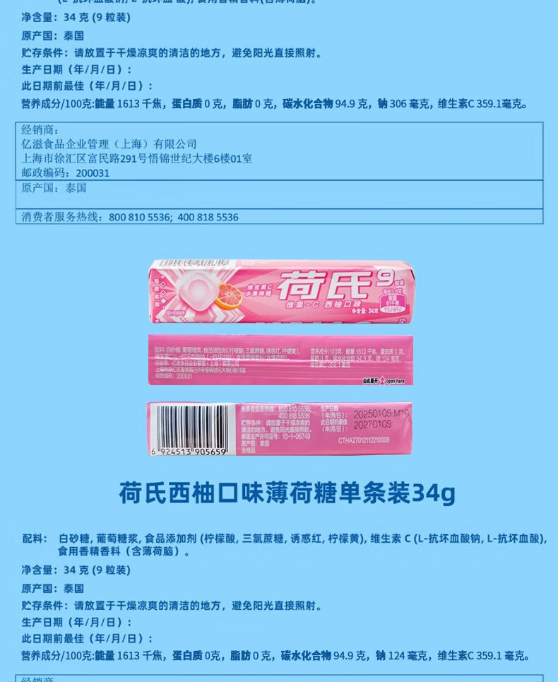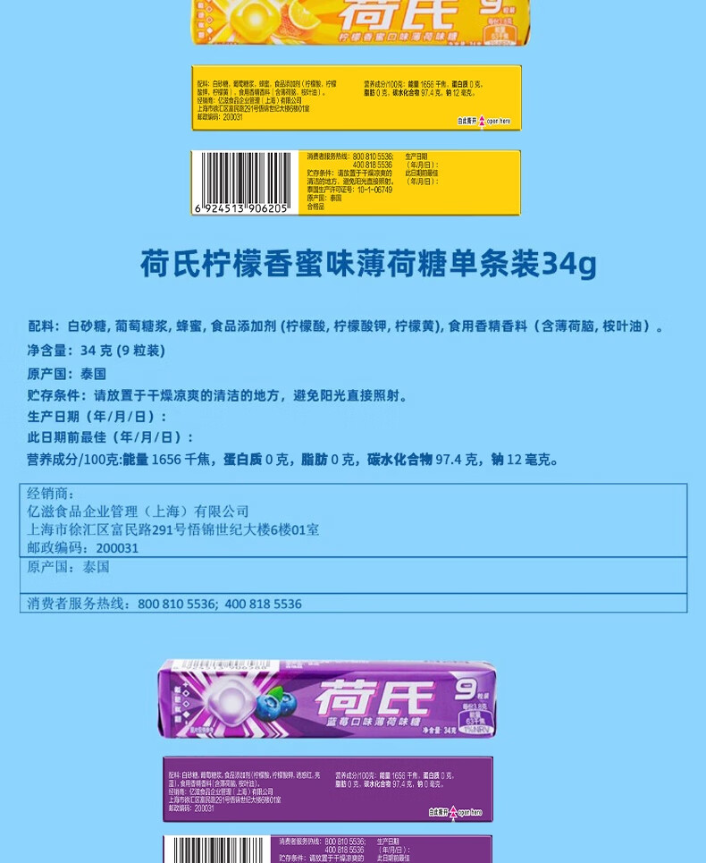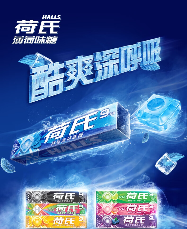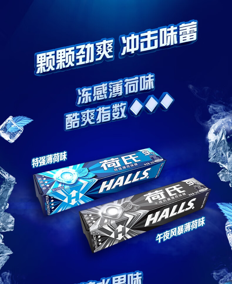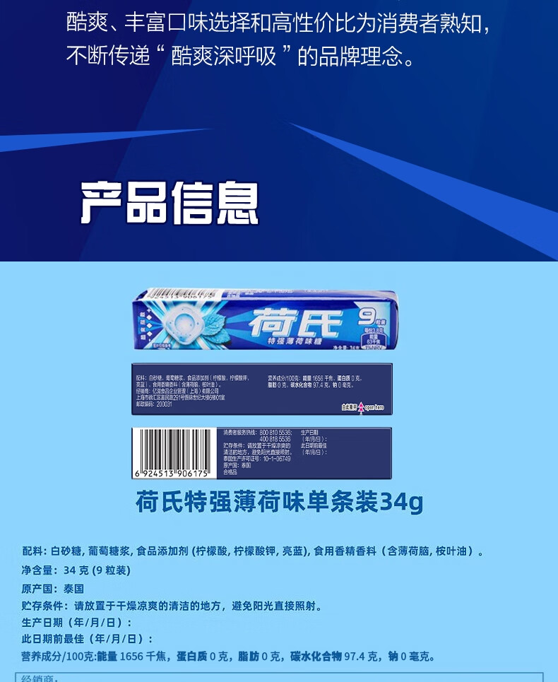 荷氏 薄荷糖 特强薄荷味 三条装9粒*3条 清爽糖果休闲零食 清新口气