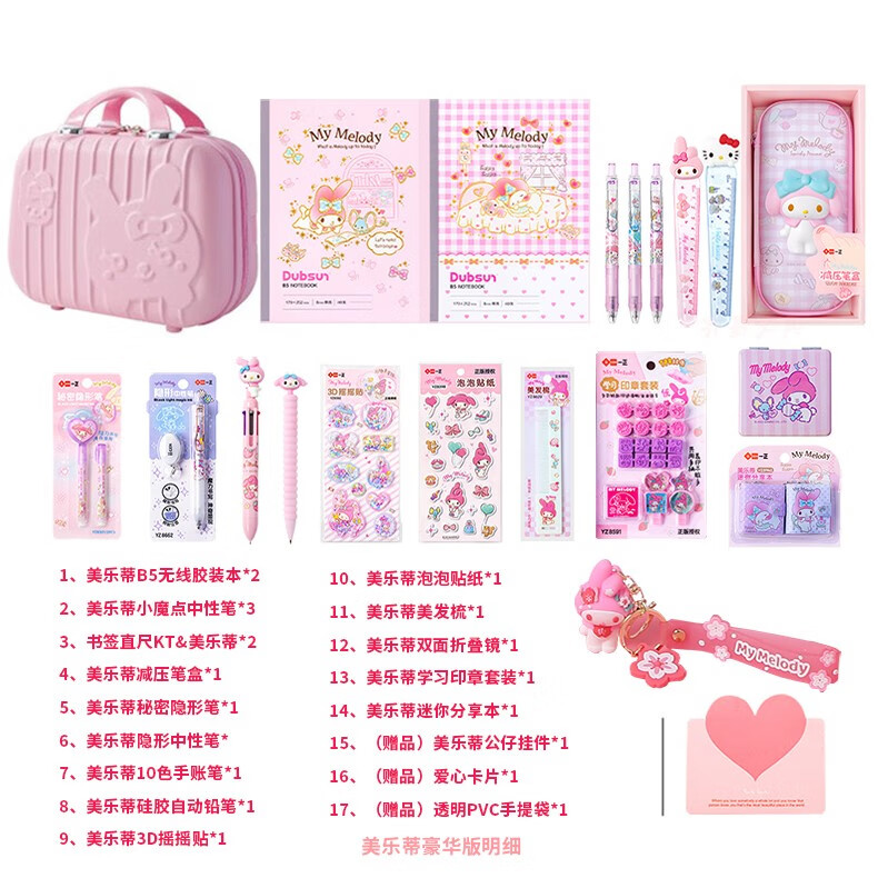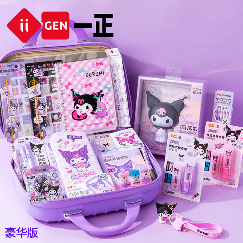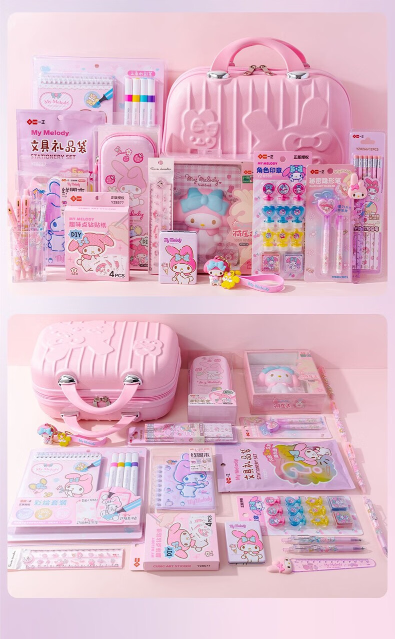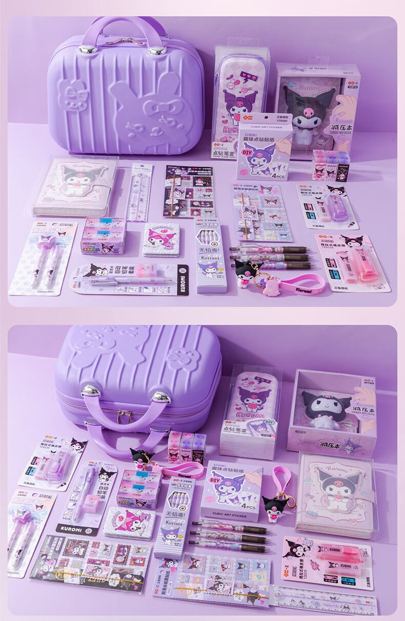 一正儿童新年礼物生日礼物库洛米美乐蒂形象女孩文具套装十岁生日礼盒小学生学习用品 C款库洛米-小学生版 手提箱礼盒