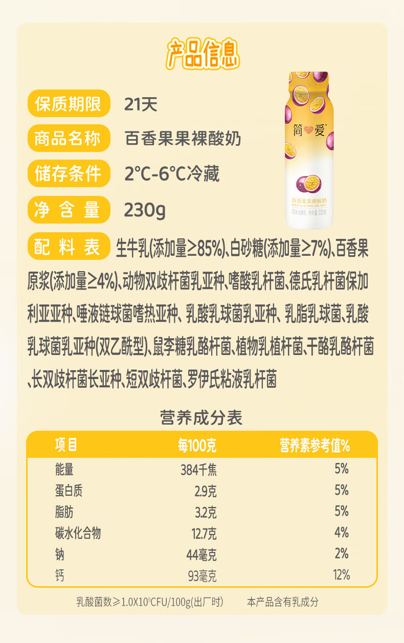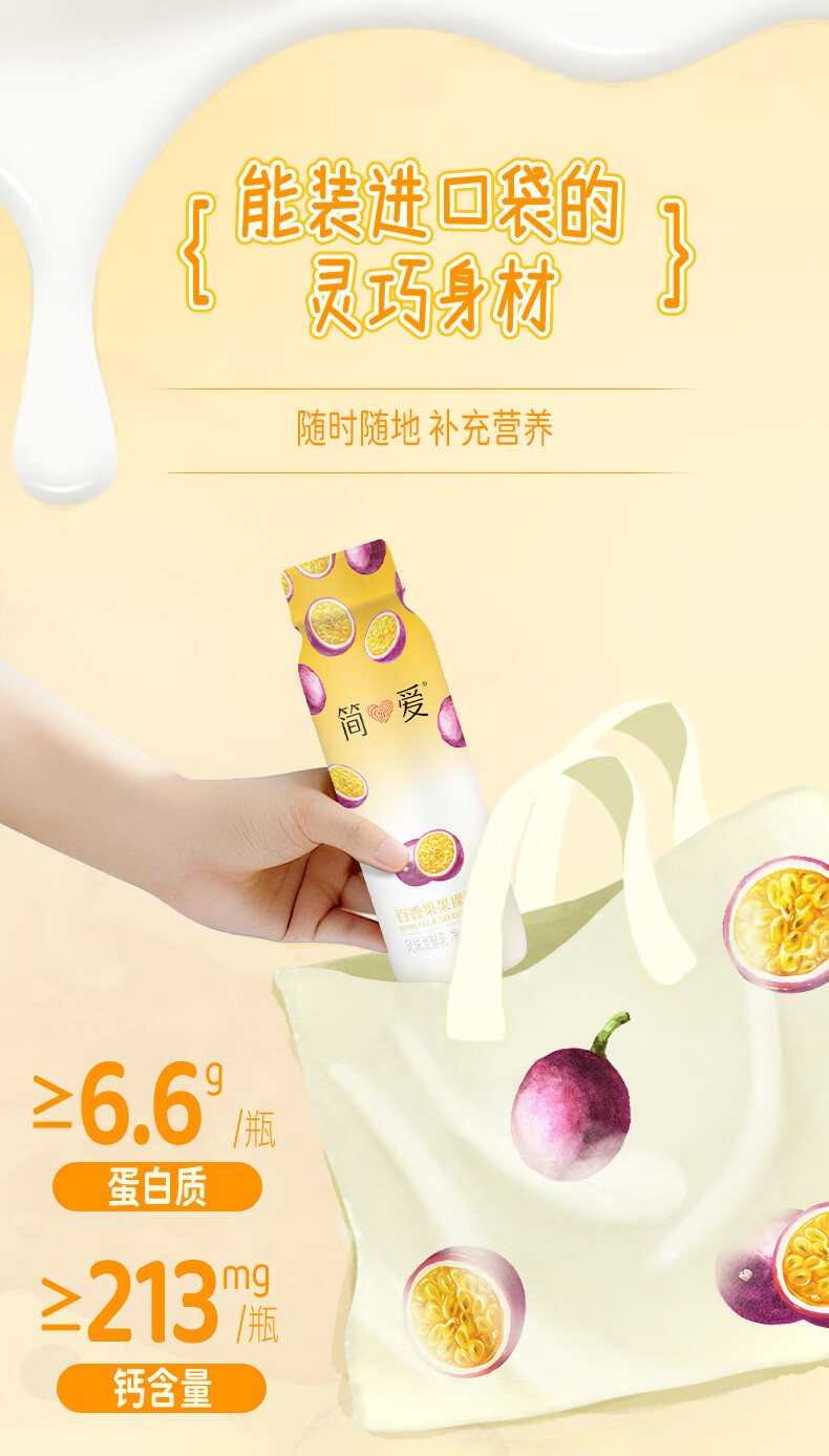 简爱饮用型低温酸奶百香果味230g*8瓶 源头直发