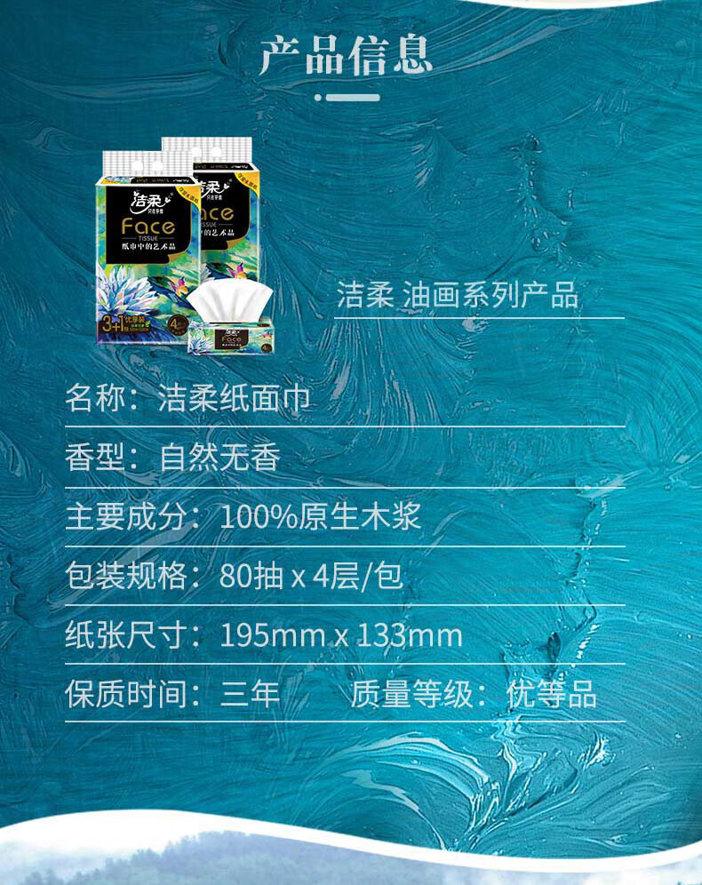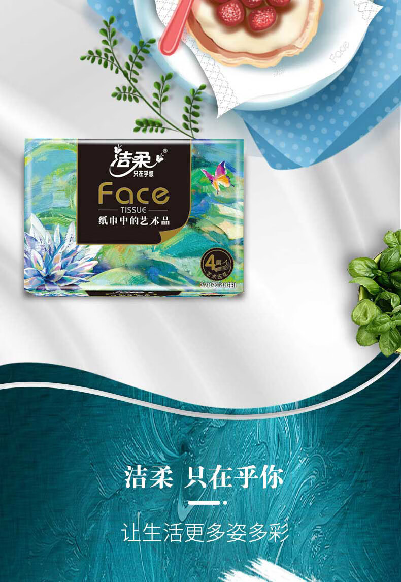 洁柔抽纸 艺术油画系列 擦手纸巾4层80抽餐巾纸可湿水面巾纸 4层 80抽*4包