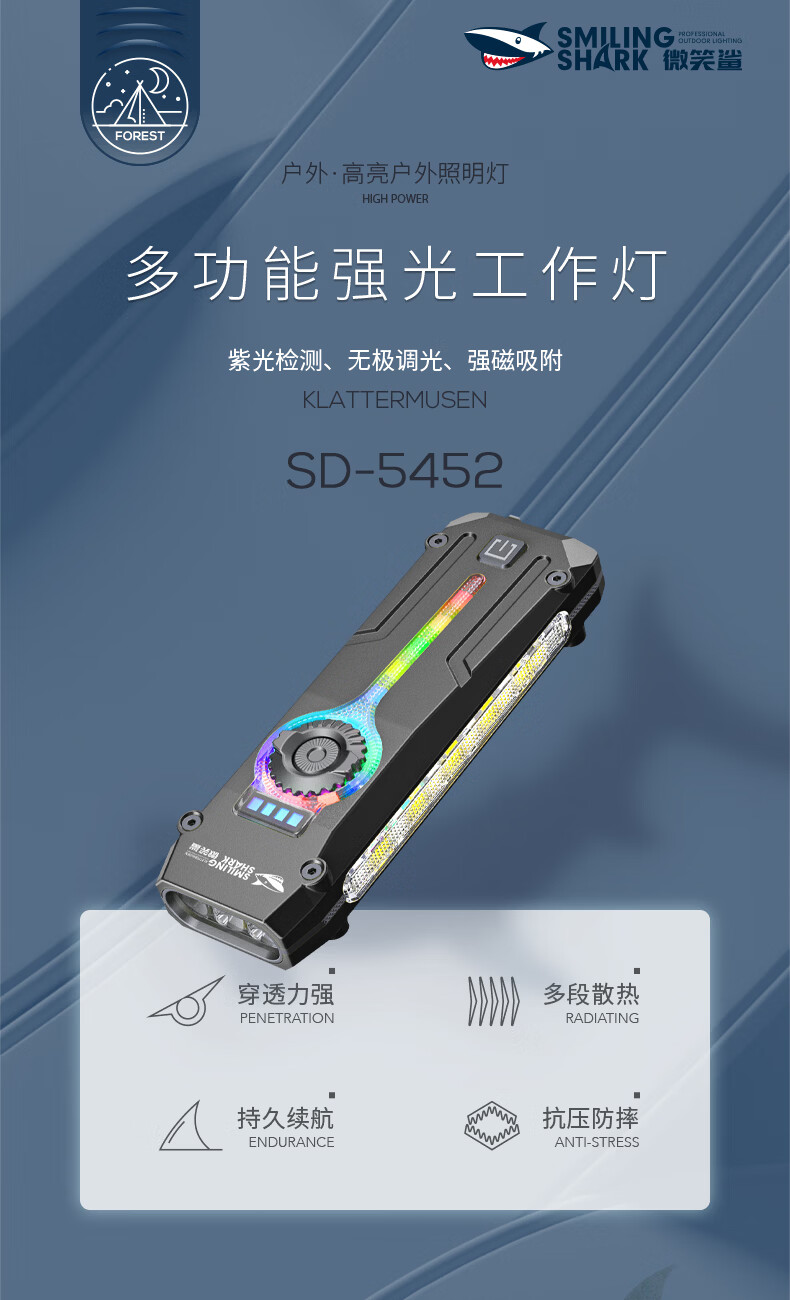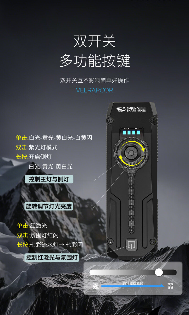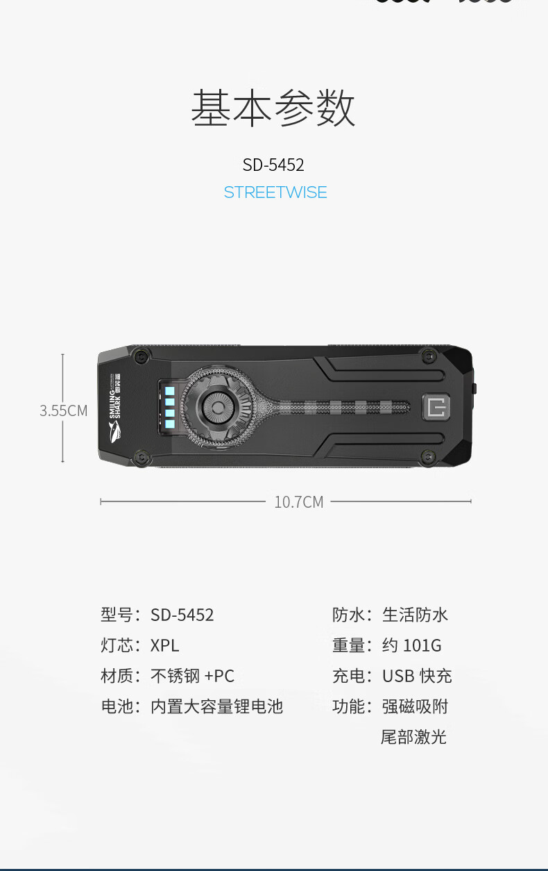 微笑鲨手电筒强光超亮小型多功能帽夹户外充电便携汽修磁吸红激光工作灯 【白黄紫三灯光】磁吸+金属夹+无极调光
