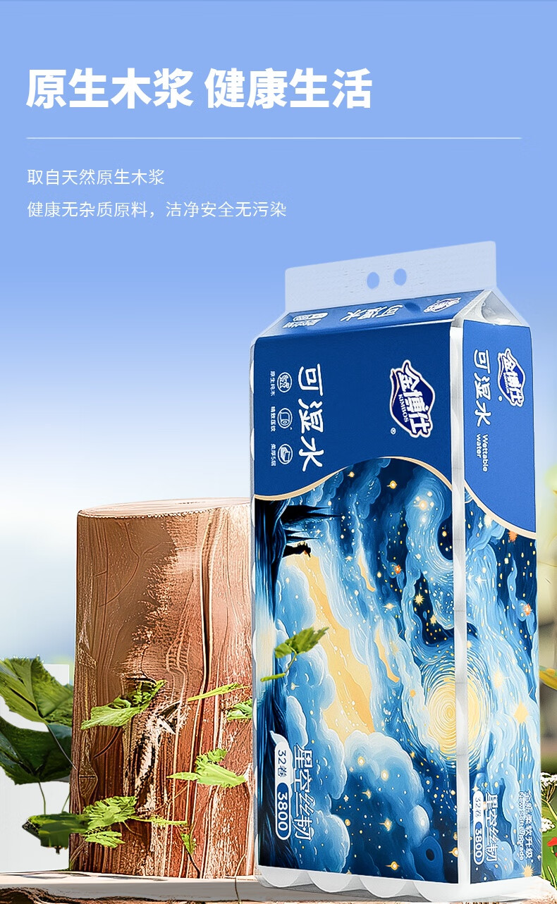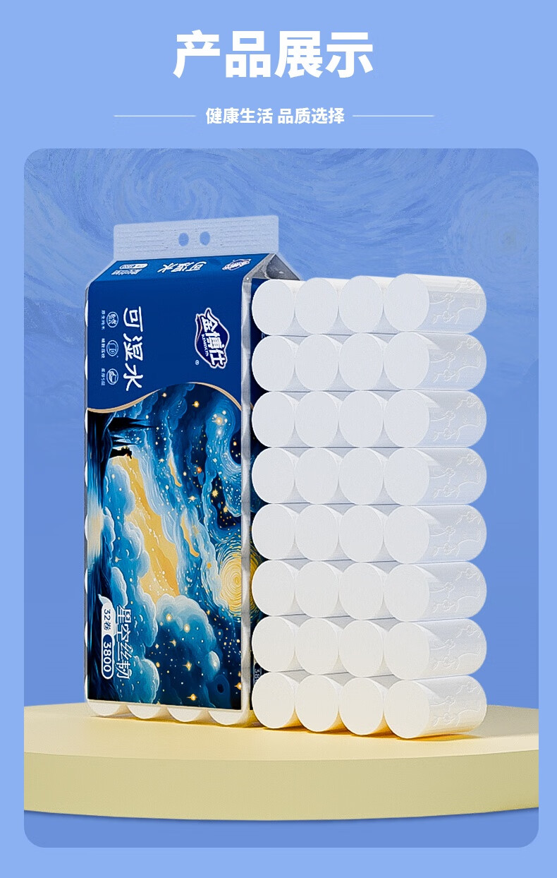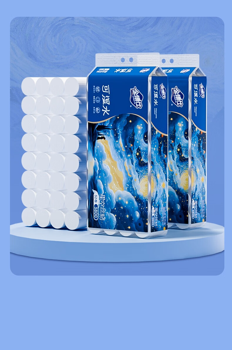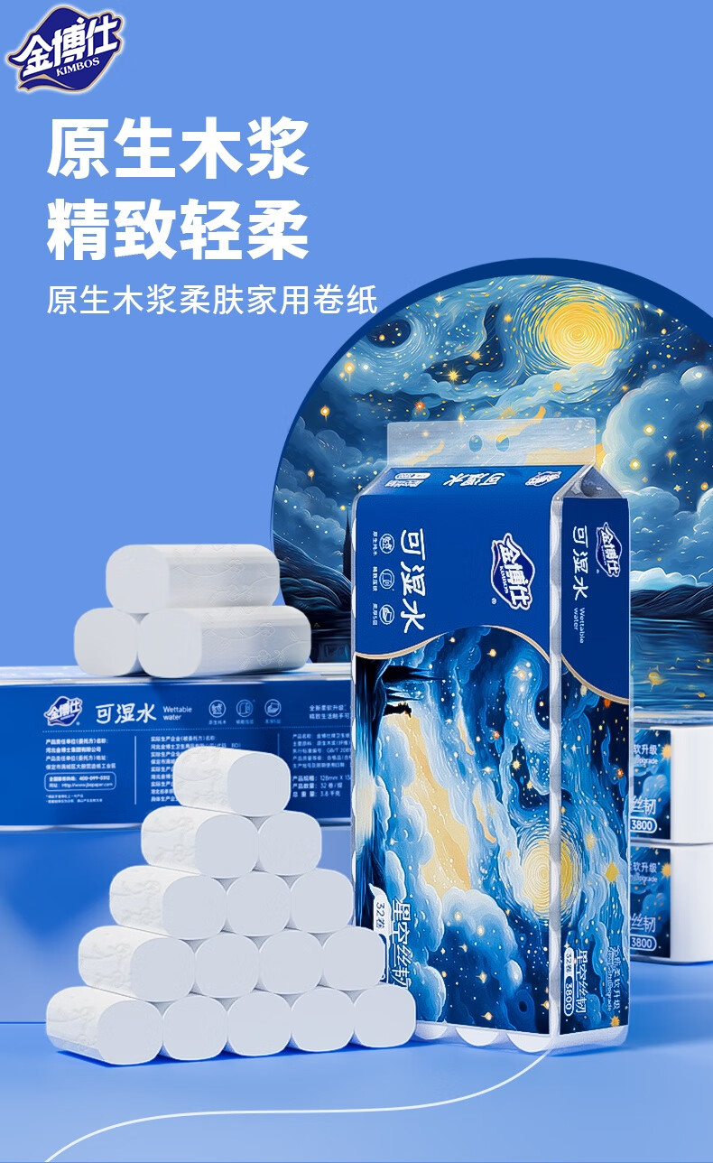 金博仕星空丝韧卷纸无芯可湿水5层119g*32卷加厚7.6斤卫生纸家用厕纸巾