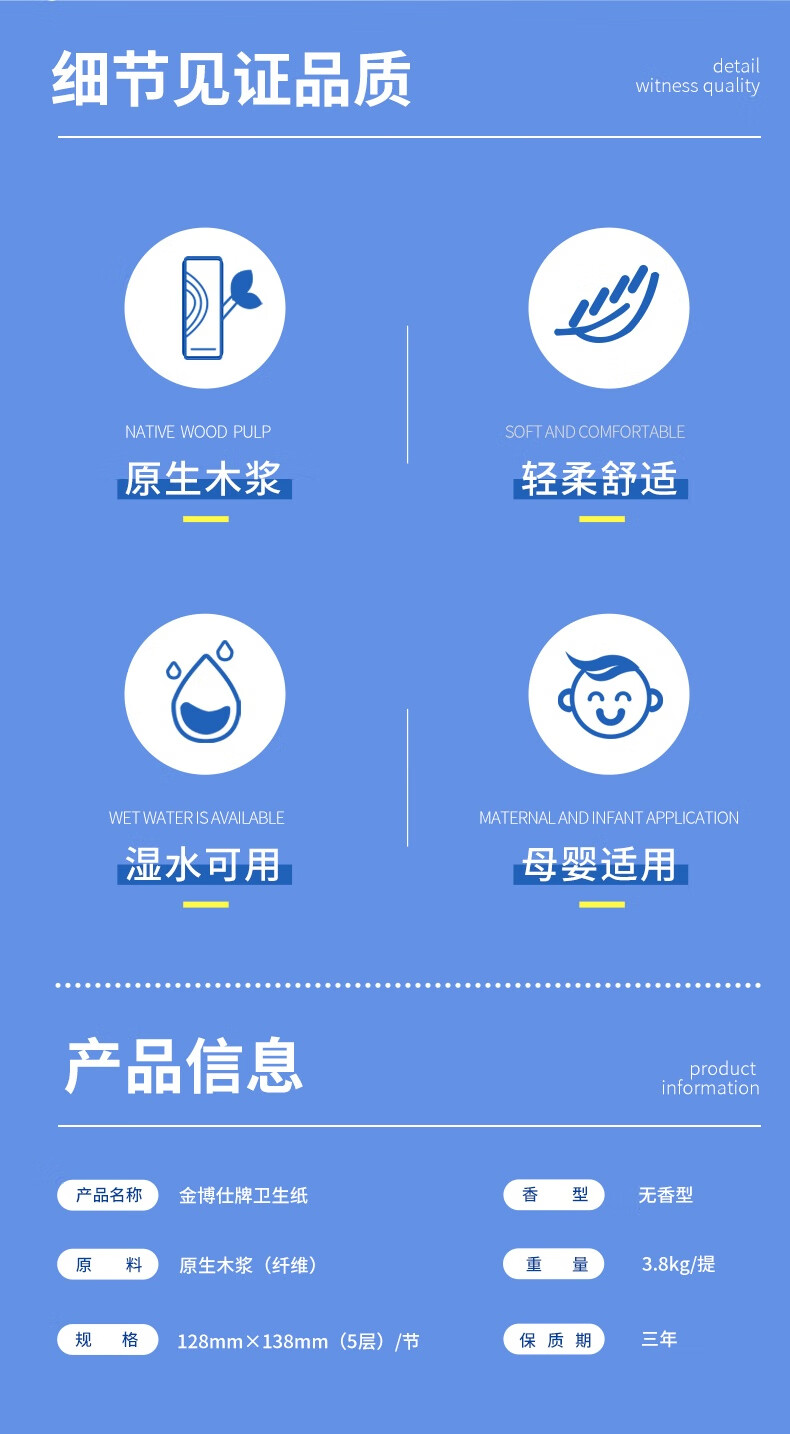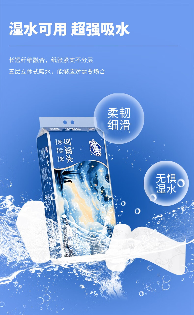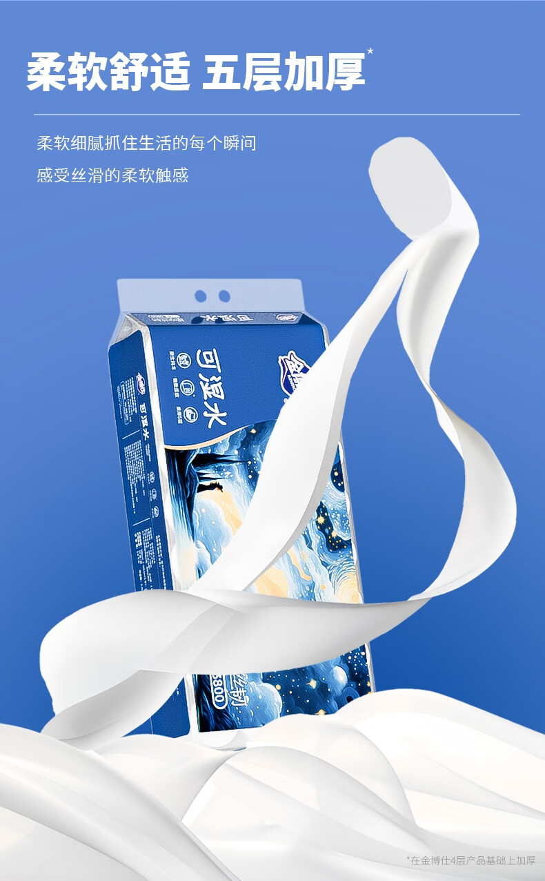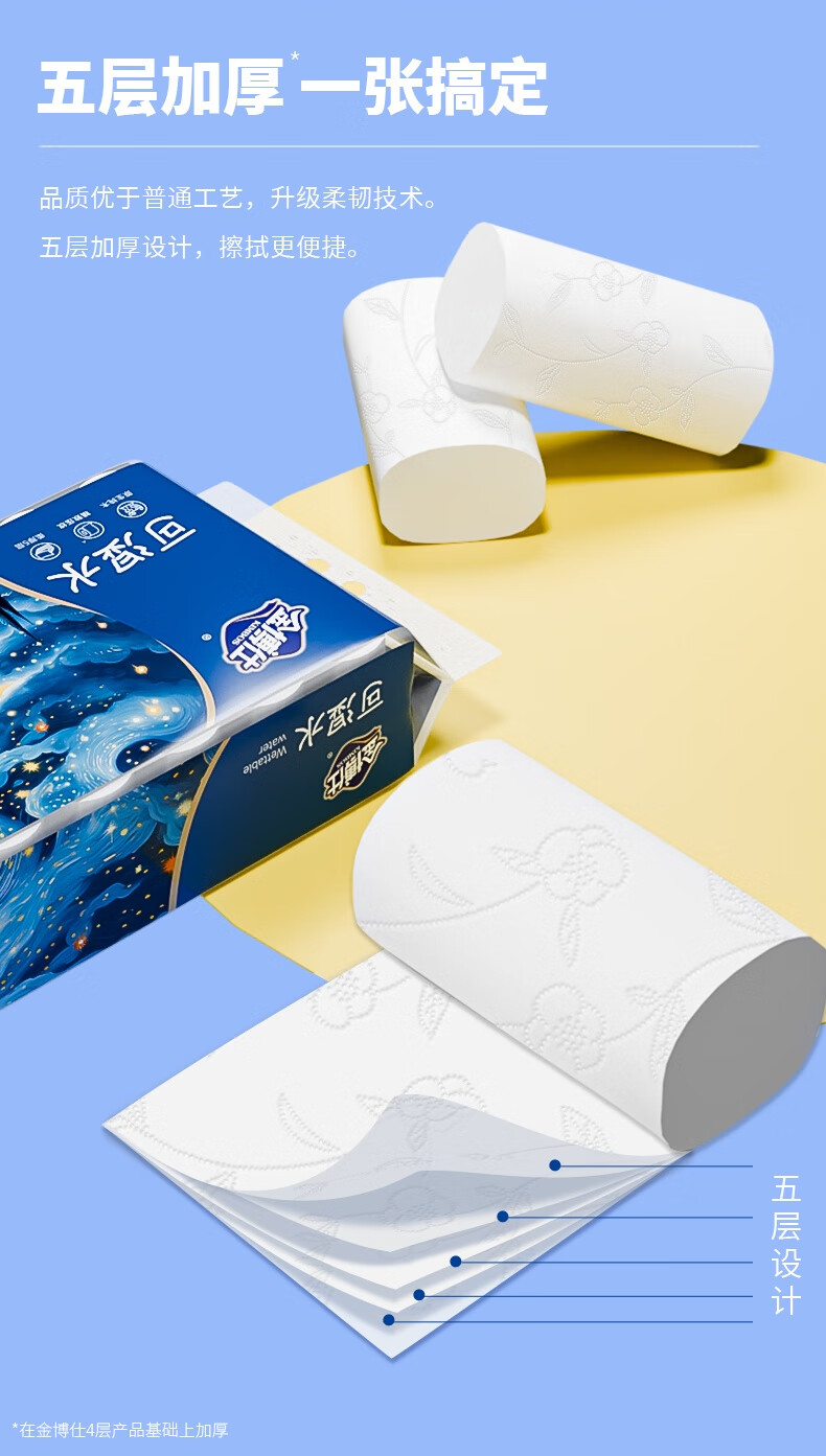 金博仕星空丝韧卷纸无芯可湿水5层119g*32卷加厚7.6斤卫生纸家用厕纸巾